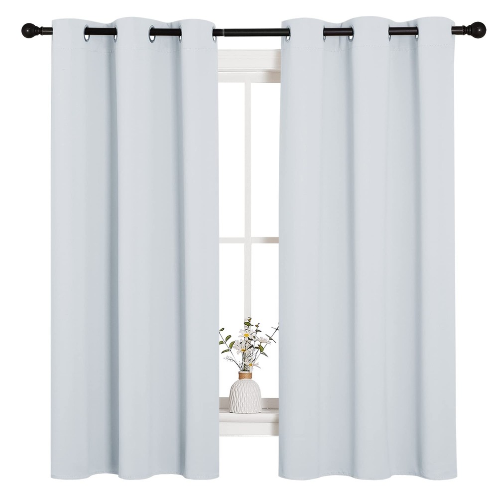 Product Page NICETOWN Window Treatment Thermal Insulated Grommet Room Darkening Cur Home Description: Features: READY MADE: Package only includes 2 room darkening curtain panels, each 42" wide x 63" long when fully spread, with 6 grommets. Due to handmade craftsmanship, size may vary by 1". No curtain rod included. The fabric is soft and heavy without a liner. SERVE WELL: Curtains impede 85% light and UV rays(Dark color curtains work well). Noise-reducing, better TV viewing thanks to the innovative triple weave technology. ENERGY SMART: Triple weave room darkening fabric balances room temperature by insulating against summer heat and winter chill. Protect your furniture, floors, and artwork from the ravages of the sun, the drapes will pay for themselves off over time. GOOD TO GO: Thread trimmed and wrinkle-free, ring (1.6-inch inner diameter) fits easily with standard curtain rods. All sets for you to put them up right away. EASY TO MAINTAIN: NICETOWN curtains are made to last. Machine washable in cold water, tumble dry. Quick ironing or steam clean when needed. Visiting the NICETOWN store, find out your favorite curtains.