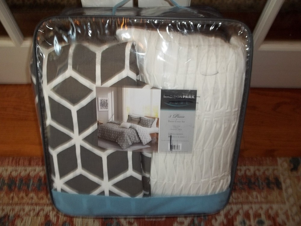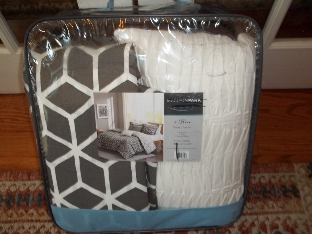 Up for purchase is a new Madison Park 5-piece King/Cal King Duvet Cover Set. 100% Cotton. Set includes: 1 King Duvet 2 King Shams 20x36 2 Decorative Bed Pillows NOTE: For shipping costs to Hawaii, Alaska and Puerto Rico please email for a quote NOTE: Returns will not be accepted for COLOR or FIT. We will not be responsible if your monitor is showing a different color or if a color does not match your other decor. If you are not sure about the color of an item please ask questions prior to purchasing. Most times color listed is color stated on the packaging. You may also do research to determine colors if you are not sure.