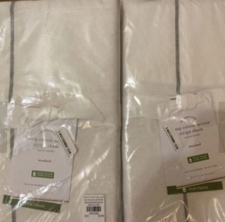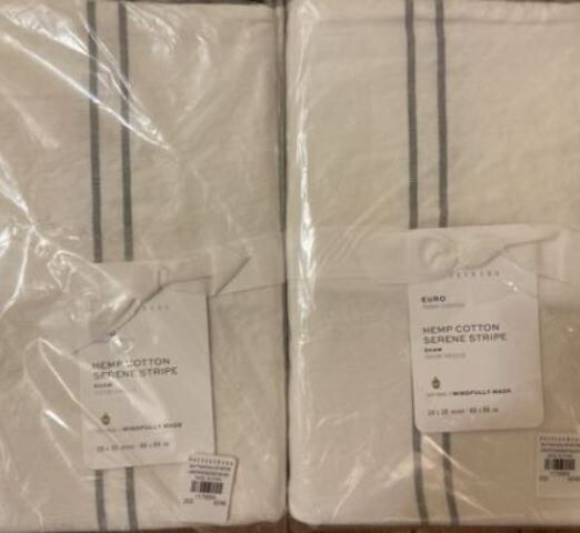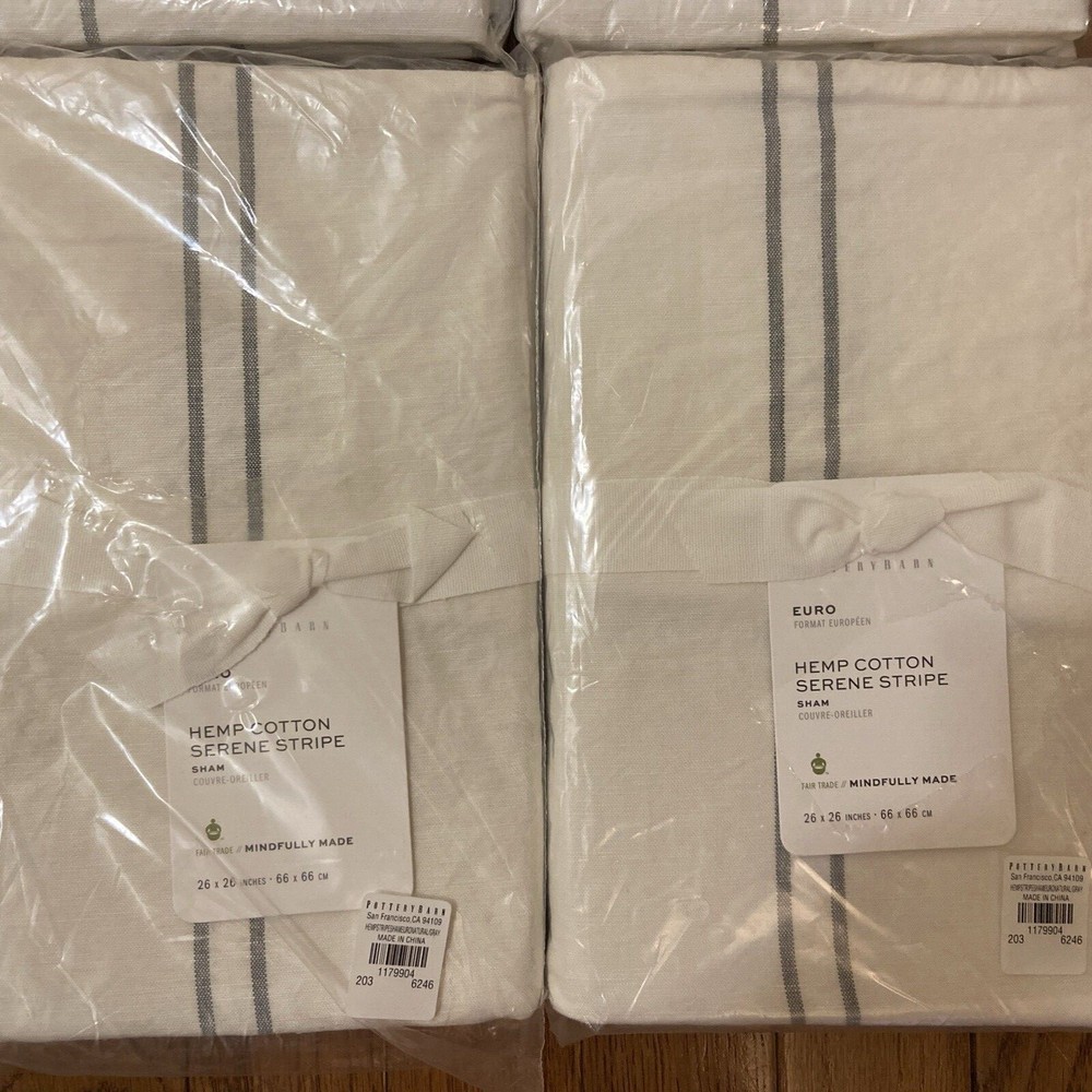 An Original Template Design Please check out my other listings! I happily combine shipping on multiple purchases! Item Description: Hello and thanks for dropping in! This listing is for a NIP! POTTERY BARN Hemp SERENE Stripe SHAM in EURO *or* STANDARD ~ Natural / Gray. Coloring is a natural ivory colored background with gray stripes. Great addition to any Pottery barn themed room or bedroom! Measurements: *Please note: If this is a clothing listing, it's extremely important for you to use these measurements to compare against your own body shape & size. Please don't just assume it will fit; some brands are more fitted or looser than others. All measurements are taken with item lying flat. If I haven't included an additional measurement that you need, please feel free to inbox me! Item measures 26X26" for Euro and 26X20" for Standard. Condition of Item(s): These items are in NIP CONDITION. All of my items come from a non-smoking home. If you have any specific questions regarding this item, please feel free to ask! All payments due within three (3) days. All items ship within 1-2 days after receipt of payment. Feedback and/or reviews are always appreciated. All sales are final. Template & Graphics © 2012 by Original Template Designs Track Page Views With Auctiva's Counter