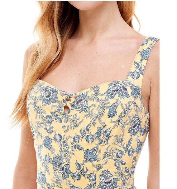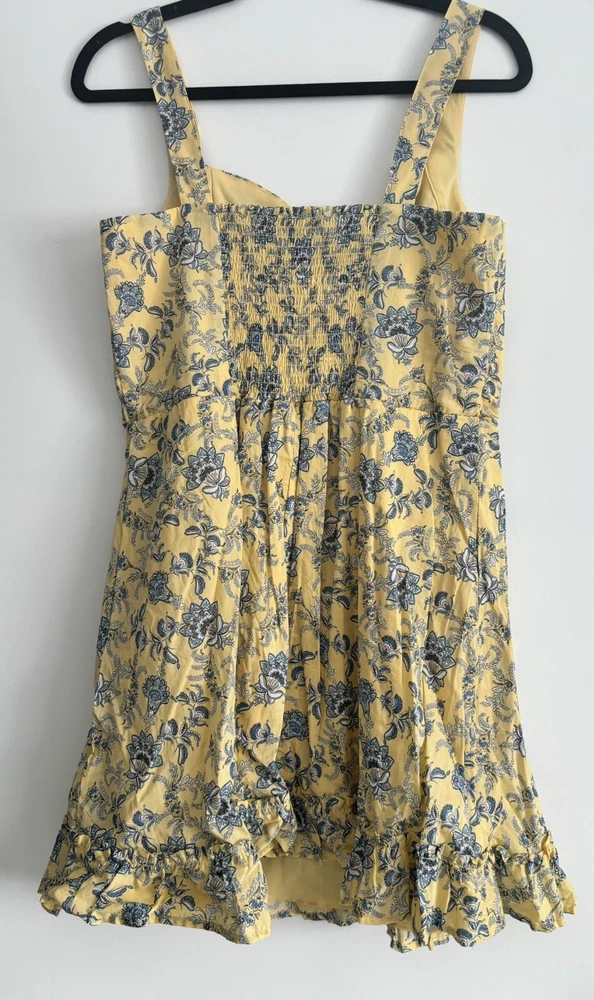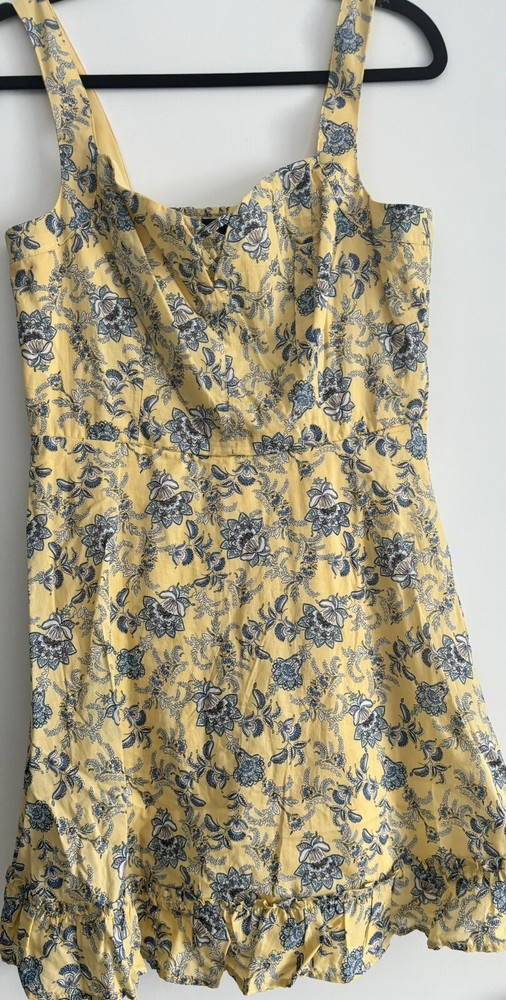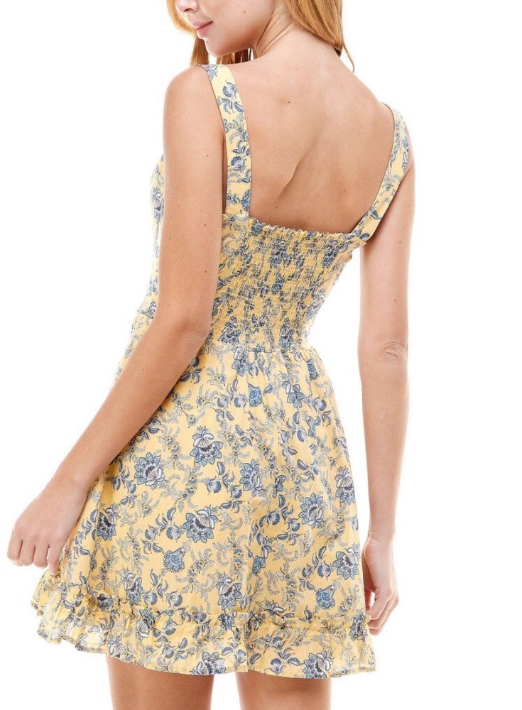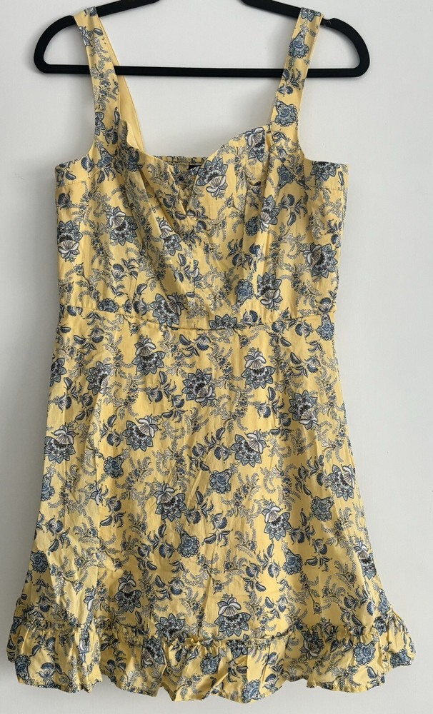NWOT City Studio Floral A Line Dress - Size Large Sweetheart Neckline Above the Knee Fully Lined Ruffle Hem Stretch Soft Color: Yellow and Blue Material: 100% Cotton Measurements: P2P 15" Waist 14" Length 27" Retails $50 *Stock Photos to Show Fit*