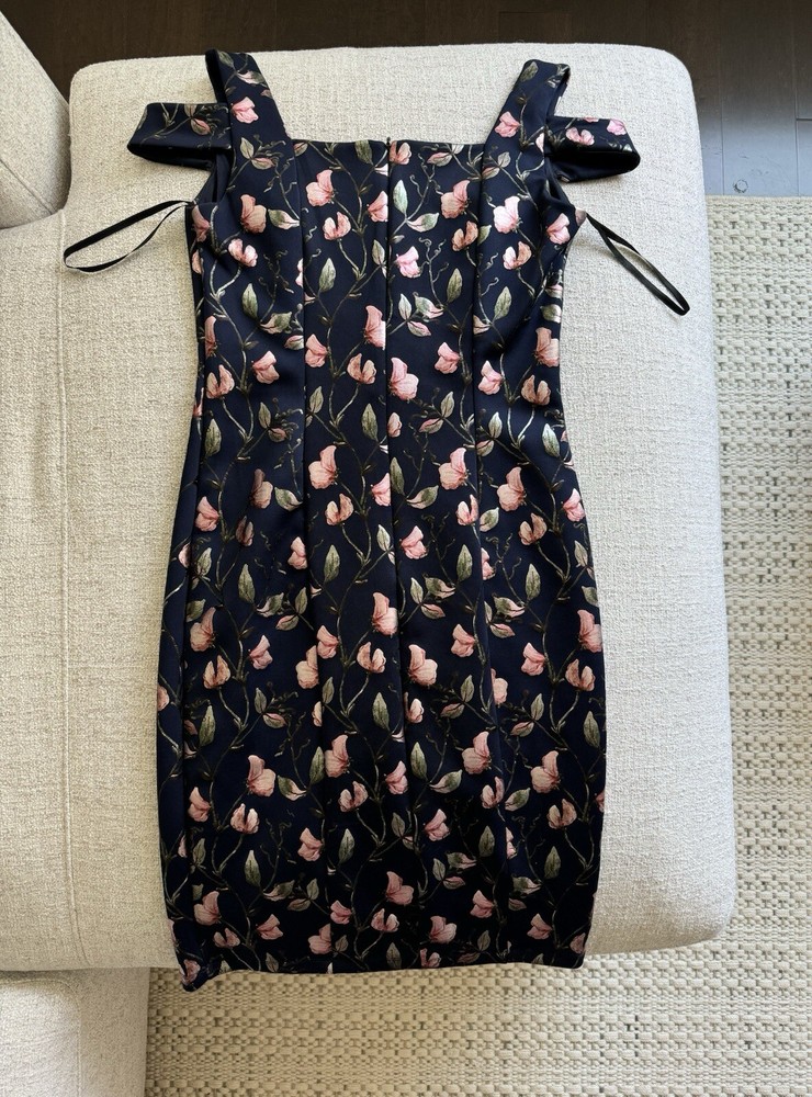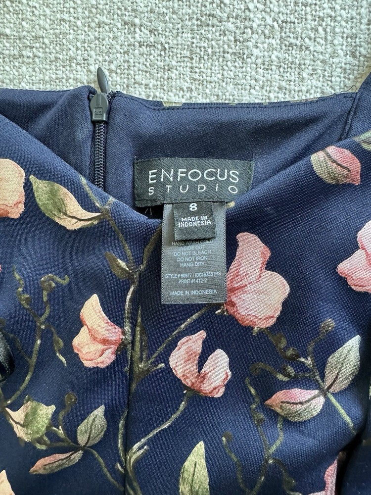 From a smoke-free, pet-free home Elevate your wardrobe with this stunning Enfocus Studio dress in size 8. The dress features a beautiful floral pattern in a metallic finish, perfect for any special occasion. The sweetheart neckline and zip closure add a touch of elegance to the knee-length sheath dress. This dress provides a comfortable and stretchy fit for all body types. Whether you're attending a wedding or a night out with friends, this dress is sure to turn heads. Don't miss out on the chance to add this gorgeous piece to your collection.