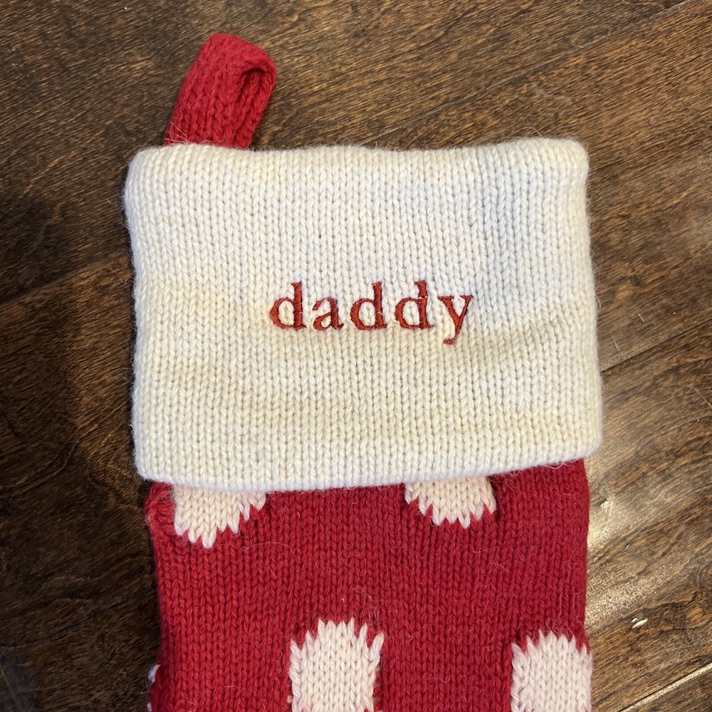 Pottery Barn Fair Isle Knit Red Christmas Stocking with Polka Dots NWOT Mono Daddy