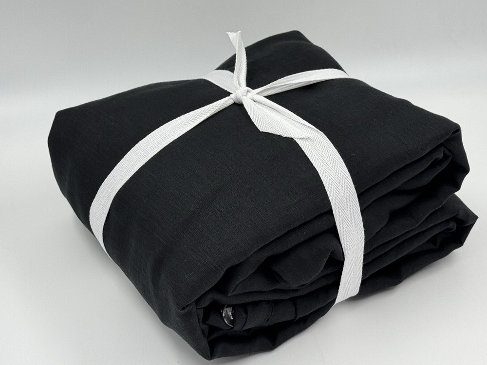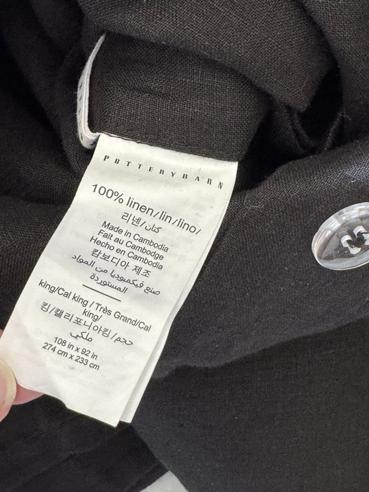 NWOT Pottery Barn Belgian Flax Linen Duvet Cover King Black This is an open box item. An Open Box item does not include any original packaging. May arrive slightly more wrinkled than a packaged item and/or have stray hair or fibers. Excellent condition. Linen woven from 100% Belgian flax. Reverses to same. Prewashed for a supersoft hand feel. Ideal for warm or cool temperatures. 108x92”