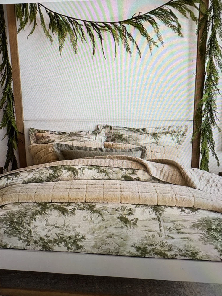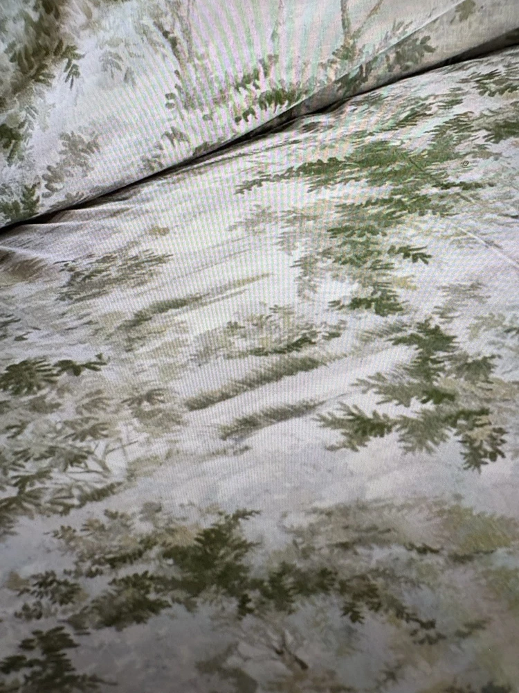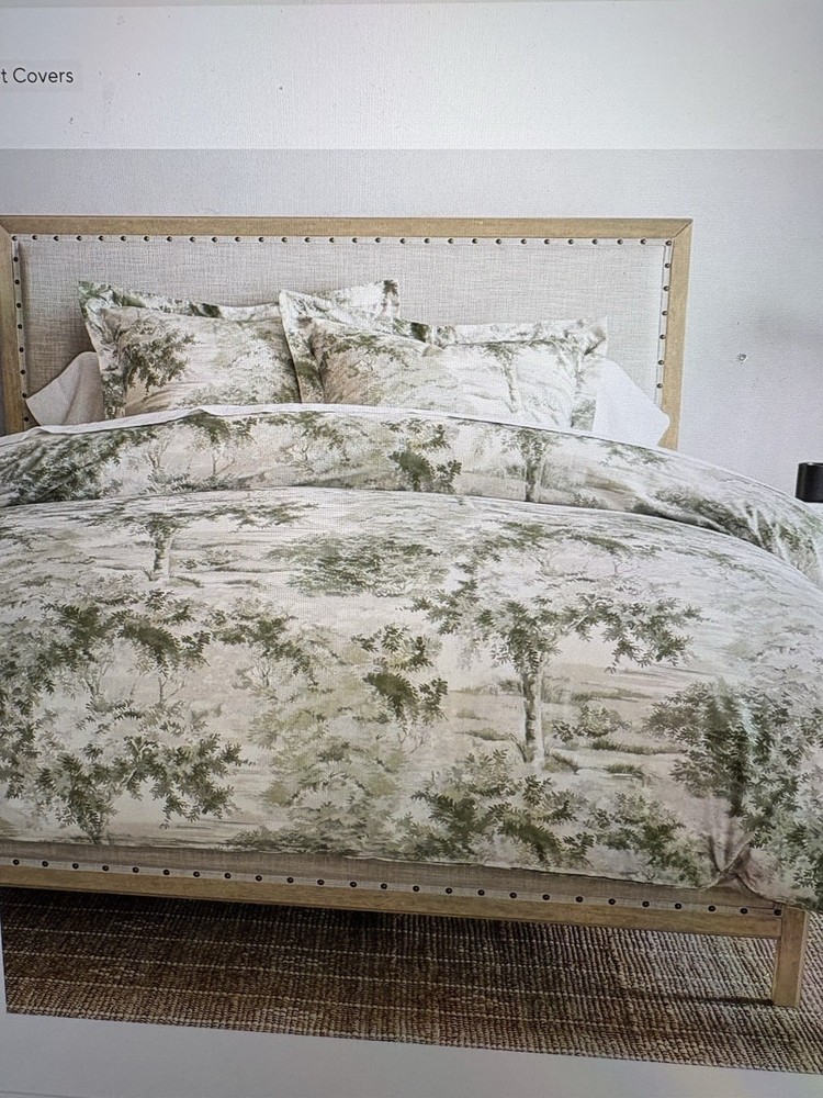 Elevate your bedroom with the cozy elegance of the Pottery Barn JARDIN TOILE Duvet Cover. Immerse yourself in the serene beauty of the JARDIN TOILE pattern, a nature-inspired design that brings the tranquility of an arboreal retreat right to your bed. This set includes one FULL/QUEEN Duvet Cover, all crafted from premium 100% cotton for a soft, breathable feel that promises a restful night's sleep. The modern Dark Green, Light Green, and Gray color palette offers a versatile look that complements a variety of decor styles, while the rectangular shape ensures a perfect fit for your bedding. Machine washable for easy care, this set features a convenient zip closure for swift removal. Whether you're refreshing your space or gifting a loved one, this duvet cover set is an inviting choice that blends comfort with style. Full Queen Duvet: 88” L X 92” W Duvet Cover Only Made with 100% Cotton Reverses to Same. Duvet Features a Hidden Zipper closure Machine Wash on Warm Since I don’t accept returns, please ask me any questions.