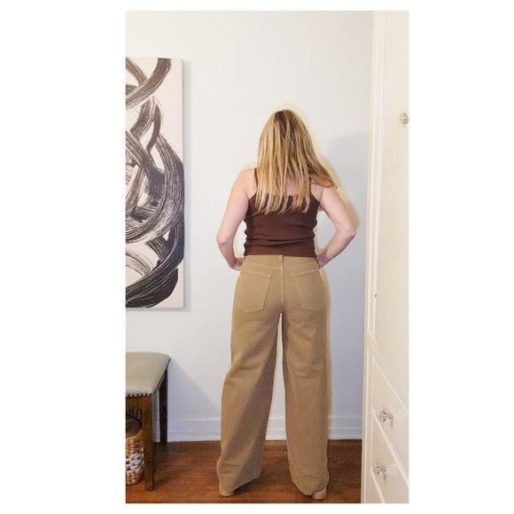 NWOT SNACKS! by Mother Women Denim The Fun Dip Puddle Wide Leg Cotton Beige 28 Description: SNACKS! by Mother Denim The Fun Dip Puddle Beige. NEW without tags. Size 28. 100% Cotton, no stretch. APPROX MSMTS TAKEN FLAT waist: 14.25" rise: 11.5" hips: 21.5" inseam: 30" *Model fits many sizes but typically 6/28 in pants. M in tops, 36C. 5’5” ➡️ Due to the amount of inventory we hold, we are unable to accommodate individual measurement and photo requests. ➡️ Crosslisted on multiple platforms ➡️ Ships in 1-2 biz days ➡️ REASONABLE Offers & Bundles welcome! tan camel brown wide leg 90s 80s