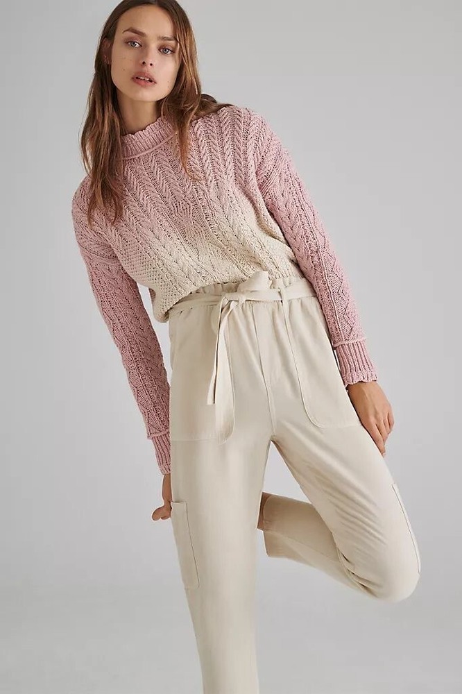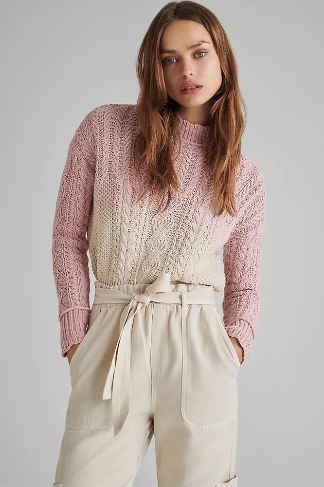 NWT ANTHROPOLOGIE Sz L MARCI DIP-DYED CABLE KNIT PULLOVER SWEATER LAVENDER. With a dip-dyed ombre finish, this darling cable-knit sweater is sure to be a favourite. APPROXIMATE MEASUREMENTS BUST: 23” across LENGTH: 25” INSIDE LABEL MARKED TO PREVENT RETURNS TO RETAIL STORE