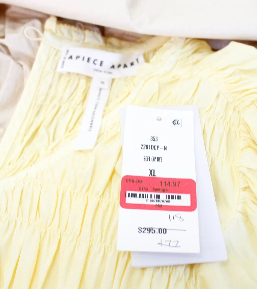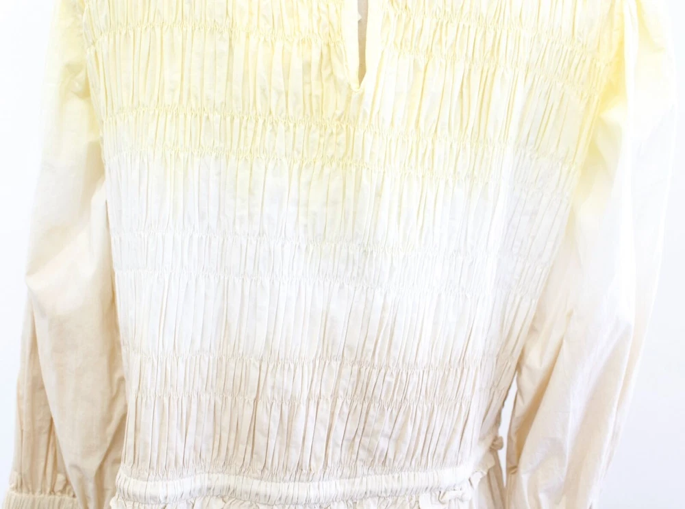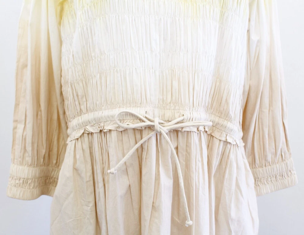 NWT Apiece Apart Aldea Smocked Organic Cotton Ombre Dip Dye Dress Size XL Yellow NWT Apiece Apart Aldea Smocked Organic Cotton Ombre Dip Dye Dress Size XL Yellow Size XL Pit to pit: 22" Top of shoulder to bottom hem: 36" Has pockets New with tags, unworn. (ID:F3)