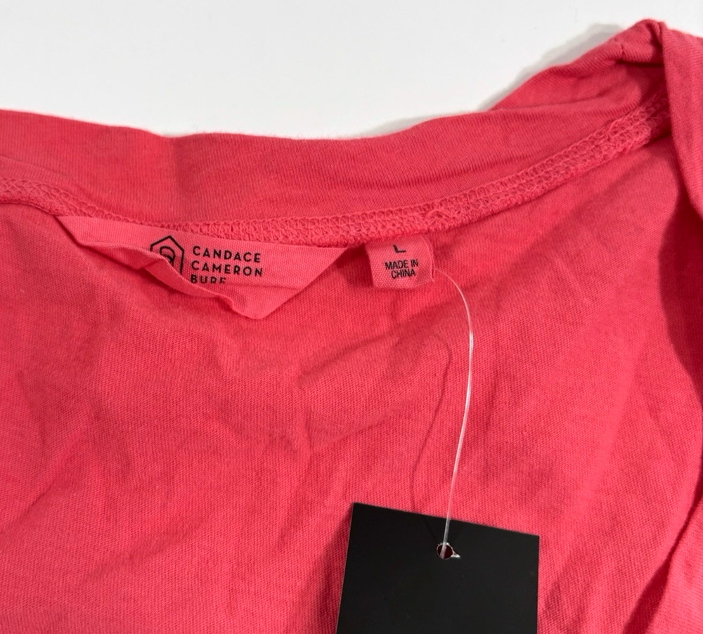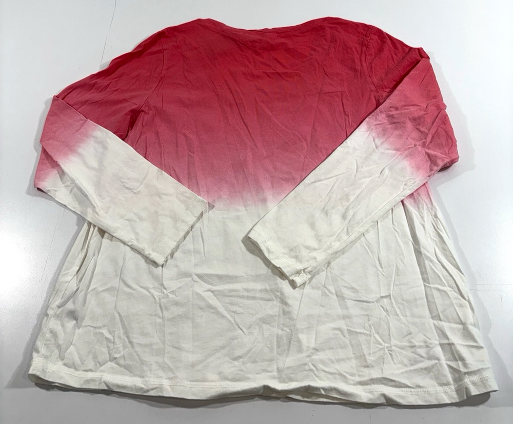 THIS AUCTION IS FOR ONE: CANDACE CAMERON BURE THE OCEAN DIPPED LONG SLEEVE T-SHIRT COLOR: POSEY (PINK AND WHITE) SIZE: LARGE MATERIAL: 100% COTTON CONDITION: NEW WITH TAGS FIRST QUALITY, NOT SECONDS FEATURES: THIS IS A LOVELY SHIRT FROM THE CANDACE CAMERON BURE COLLECTION IT WILL HAVE A RELAXED FIT ON A SIZE 14-16. 41" TO 42.5" BUST PIT TO PIT 21" BACK OF NECK TO BOTTOM HEM 24.75" ITS COLOR IS AN OMBRE OF PINK TO WHITE SCOOP NECKLINE WITH TWIST DETAIL, DIP-DYE, STRAIGHT HEM, LONG SLEEVES SEMI-FITTED, FOLLOWS THE LINES OF THE BODY ITEM # 1054 FREE SHIPPING IN THE USA!!!!