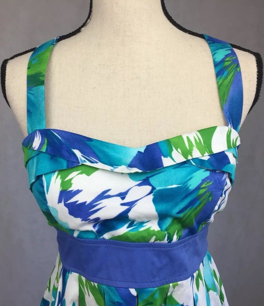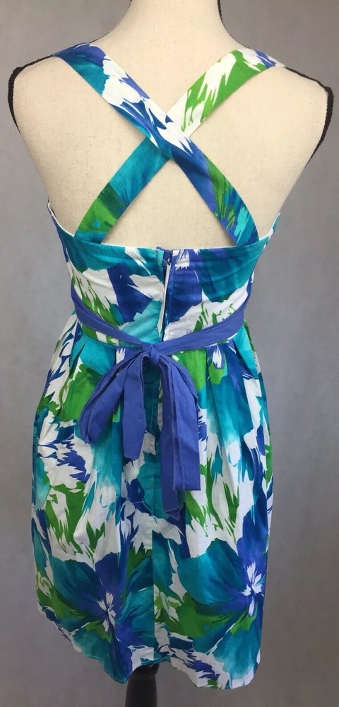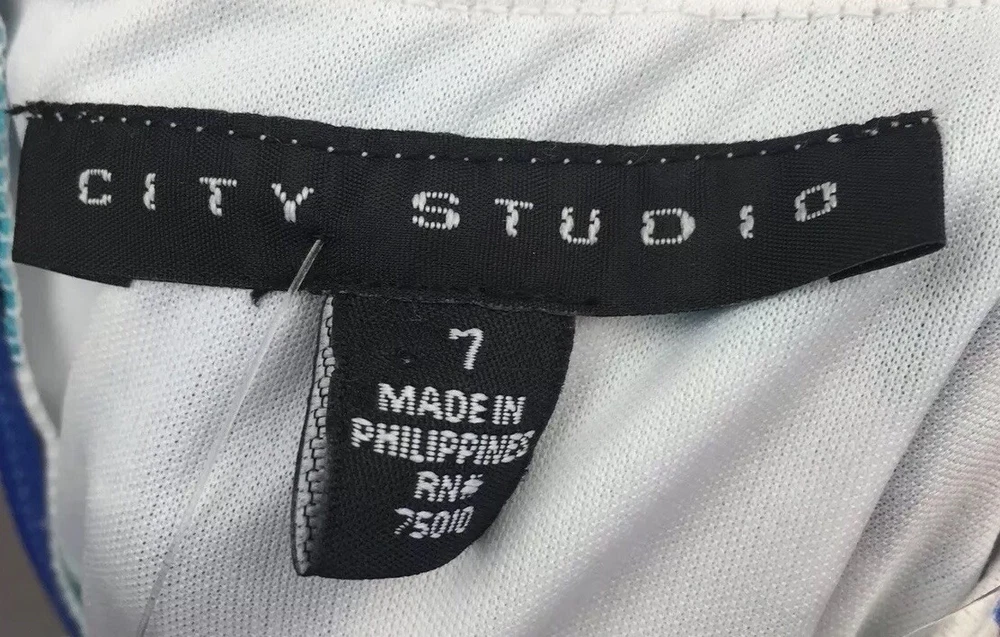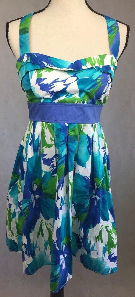 NWT City Studio Size 7 Sun Dress Blue/Green Floral Pleated High Waist Zip & Sash. Condition is New with tags. Shipped with USPS First Class Package.