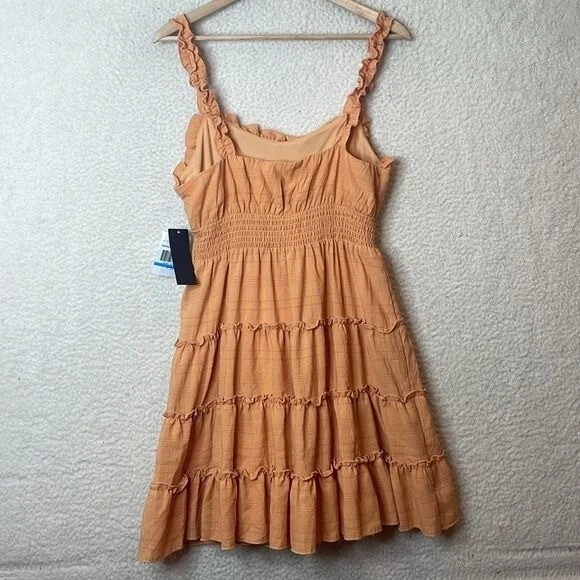 NWT City Studio Womens Orange Sleeveless Ruffled Tiered Dress JUNIORS XL Sleeveless, ruffled at the shoulders and at the neck; soft; flowing; tiered skirt with elastic waistband. Fully lined. Has stretch New with Tags Retail $59 Approx Measurements: CHEST (pit to pit is half): 34" LENGTH: 35" Thanks for checking out my listing(s)! If the shipping charge looks too high, please ask me if I can adjust it for you. I am more than happy to do so if I can. I also combine shipping for multiple items. If I can fit your item in a flat-rate envelope, I will do that and adjust the shipping charge for you. If you are charged shipping when you "buy the item," I will gladly do a refund (price adjustment) when I print your label. Thanks for shopping with me; I sincerely appreciate that you are supporting my small business! CLT02056781SATEWRHH-4/24 B-MM2 #womens #clothing #wardrobe #basics #womensclothing #nwt #nwot #GUC #EUC 14 oz Regarding clothing items, if item is NWT, it has not been laundered. If item is pre-loved, it has been inspected by hand for damage and is clean.