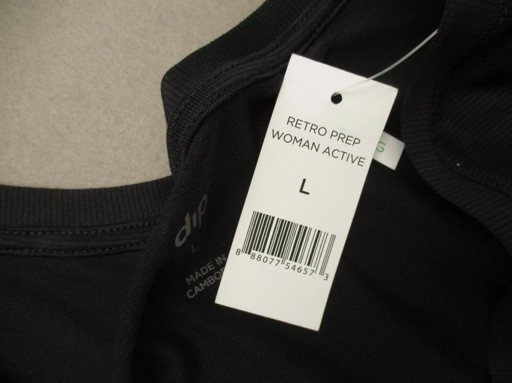 NWT DIP Size L Womens Black Printed V-Neck Short Sleeve Athletic Top 129 Please see measurements and fabric content in the listing pictures. Thank you!