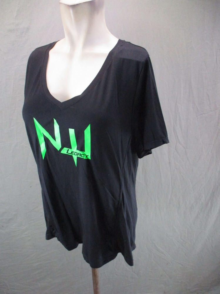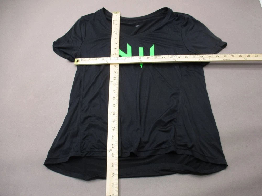 NWT DIP Size L Womens Black Printed V-Neck Short Sleeve Athletic Top 129 Please see measurements and fabric content in the listing pictures. Thank you!...