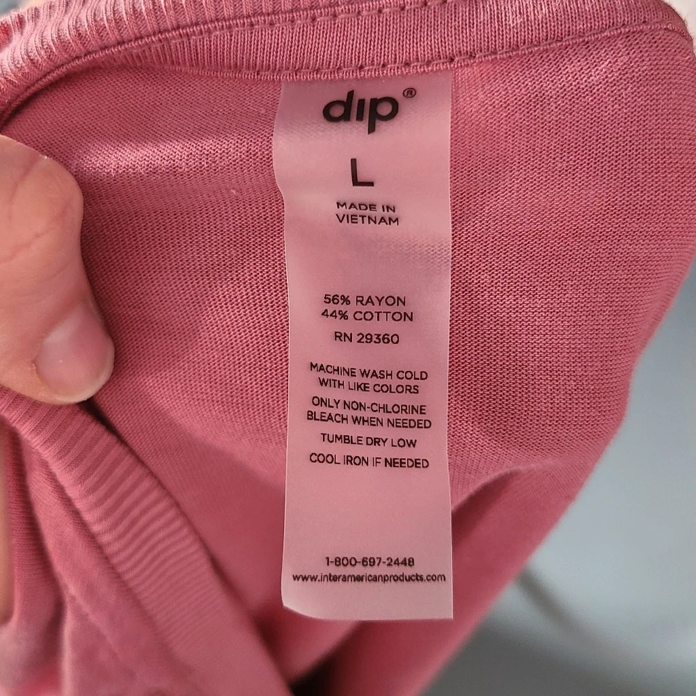 <![CDATA[<div>NWT Dip pink v neck tshirt size large Please look at Measurements, brand sizes can vary immensely Measurements Chest 44-52 Length 22 Fabric is rayon cotton. made in vietnam All pre owned clothing is laundered before being shipped a cimple everyday casual tee with a dusty rose pink color. Top is new with tags. no signs of wear