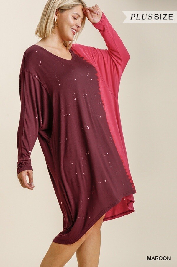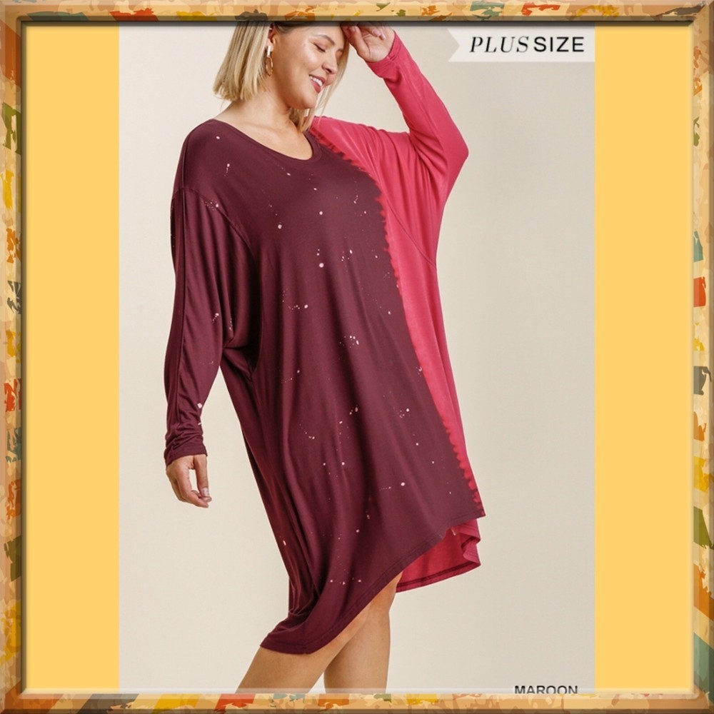 ▶️ Dip Dye Maroon Dress ▶️ Round Neckline ▶️ Long Dolman Sleeves ▶️ 95% Rayon; 5% Spandex ▶️ Bust: 44” ▶️ This item is NWT in unused condition