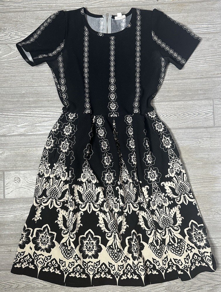 NWT Lularoe Large Floral Dipped Amelia with Pockets Black and White....
