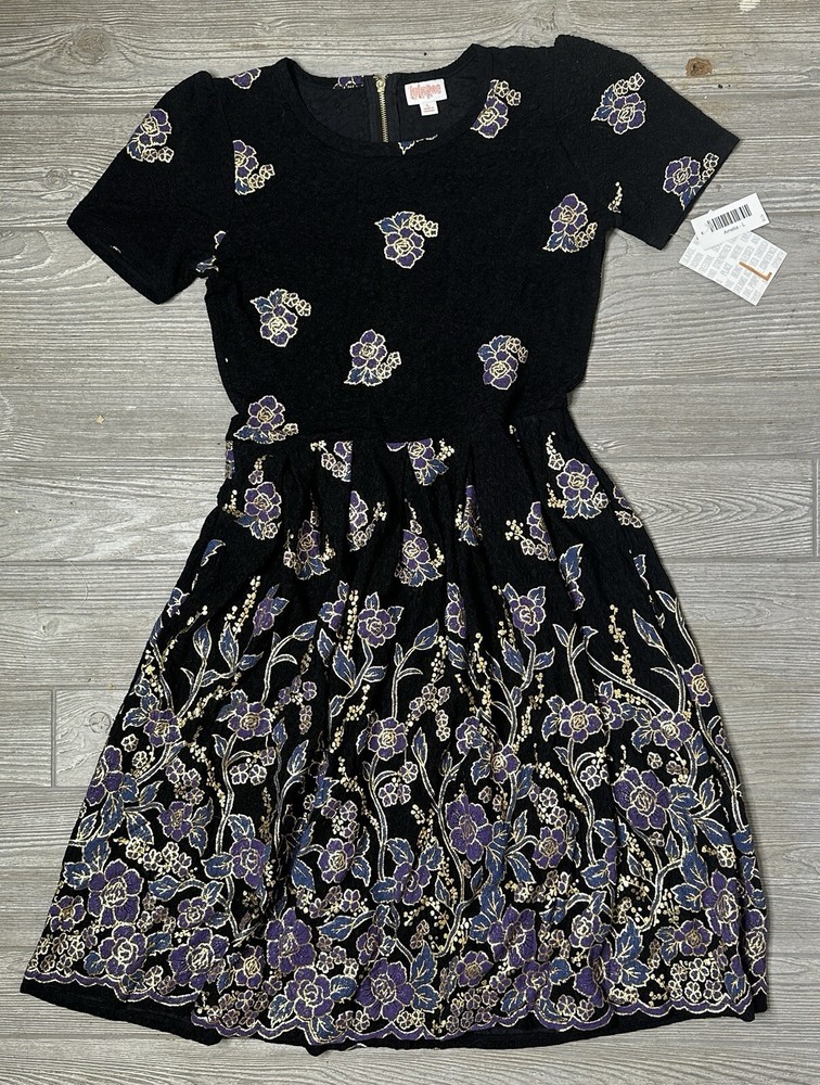 NWT Lularoe Large Elegant Amelia Black Gold Foil Floral Roses Dipped Ombre Holiday....