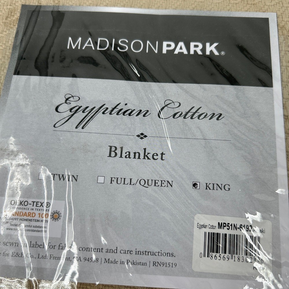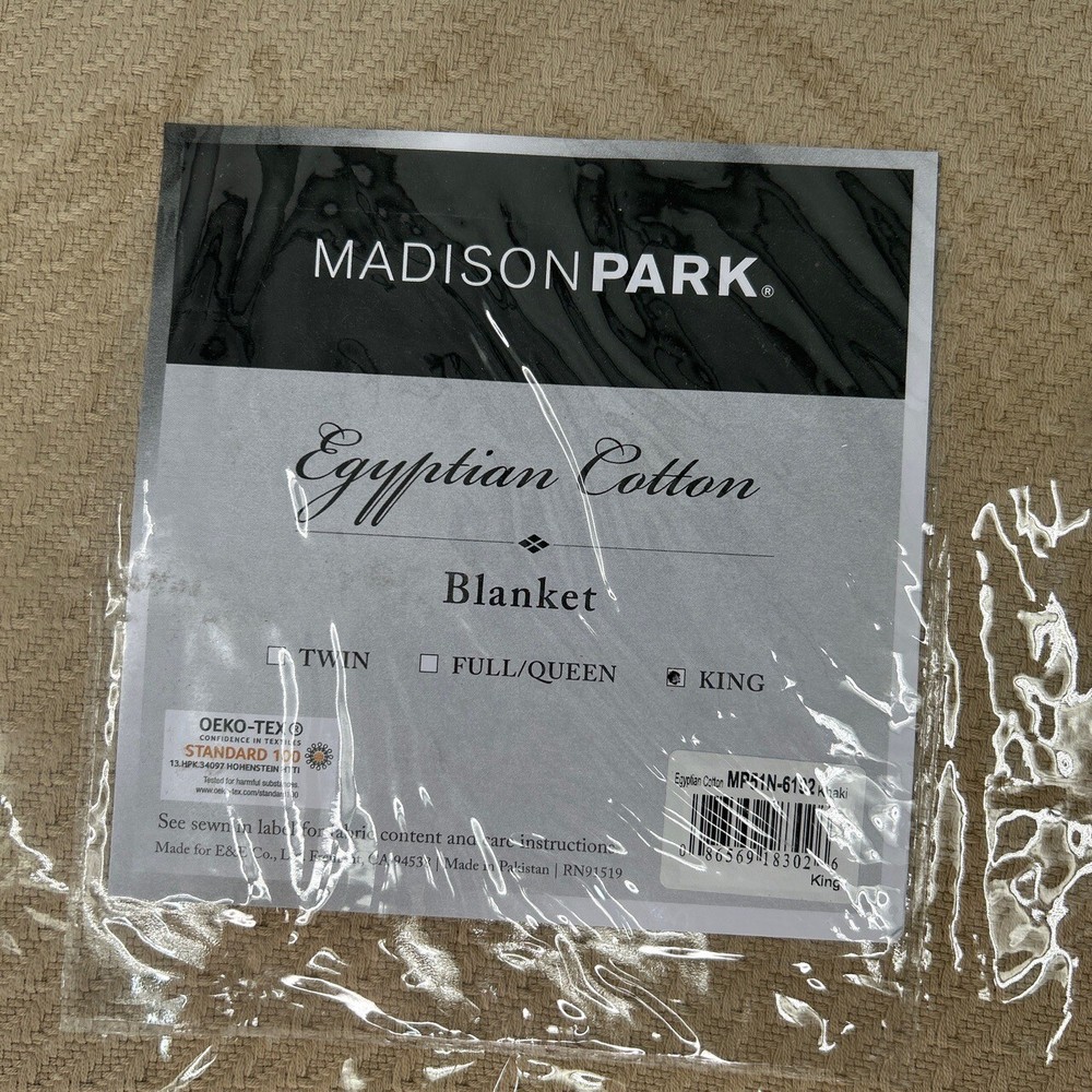 Madison Park MP51N-4932 Beige Egyptian Cotton Woven King Blanket Wrap yourself in luxury with this Madison Park woven blanket. Made from high-quality Egyptian cotton, it provides a cozy feel and elegant style for your bedroom. The king size and neutral beige hue ensure it complements any decor. Condition: New condition. Size: King Features: Egyptian Cotton, King Size, Beige, Woven Design, Luxurious Feel Brand: Madison Park Type: Blanket Style: Woven Color: Beige Material: Egyptian Cotton Measurements: See pictures. Tags: Madison, Park, Blanket, King, Egyptian, Cotton, Beige, Woven