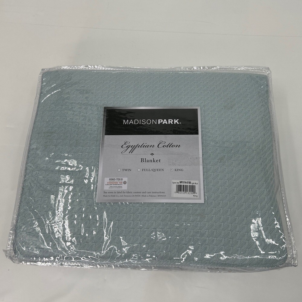 NWT Madison Park MP51N-6189 Blue Textured Pattern King Blanket This brand new Madison Park blanket is perfect for adding a touch of luxury to your bedroom. It features a beautiful blue color with a textured pattern, crafted from premium Egyptian cotton. OEKO-TEX certified for peace of mind, this king-size blanket is both stylish and comfortable. Condition: New condition. Size: King Features: Blue, Textured Pattern, OEKO-TEX Certified, Egyptian Cotton Brand: Madison Park Type: Blanket Style: Patterned Color: Blue Material: Egyptian Cotton Measurements: See pictures. Tags: Madison, Blanket, King, Blue, Cotton, Textured, OEKO-TEX, New, Pattern, Luxury