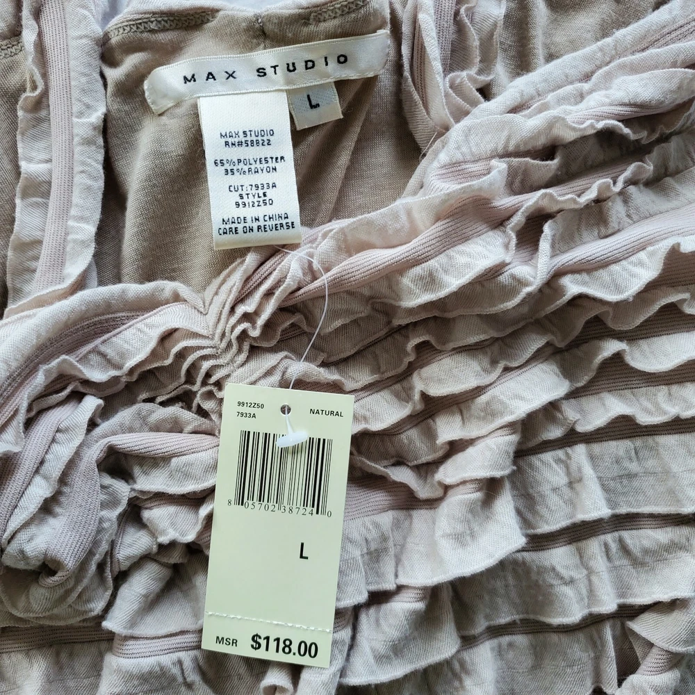 *** *** Due to hurricane Milton, my shipping may be delayed. I will continue to ship next day as long as conditions permit. ** **. NWT Max Studio Gray Bodycon Ruffle Dress L. Condition is New with tag...