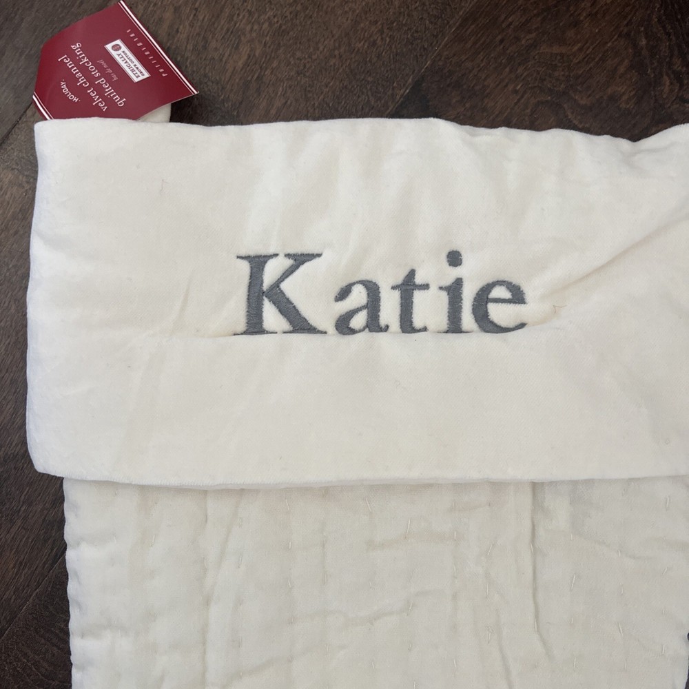 Pottery Barn Katie Quilted Velvet Ivory Large Christmas Stocking NWT