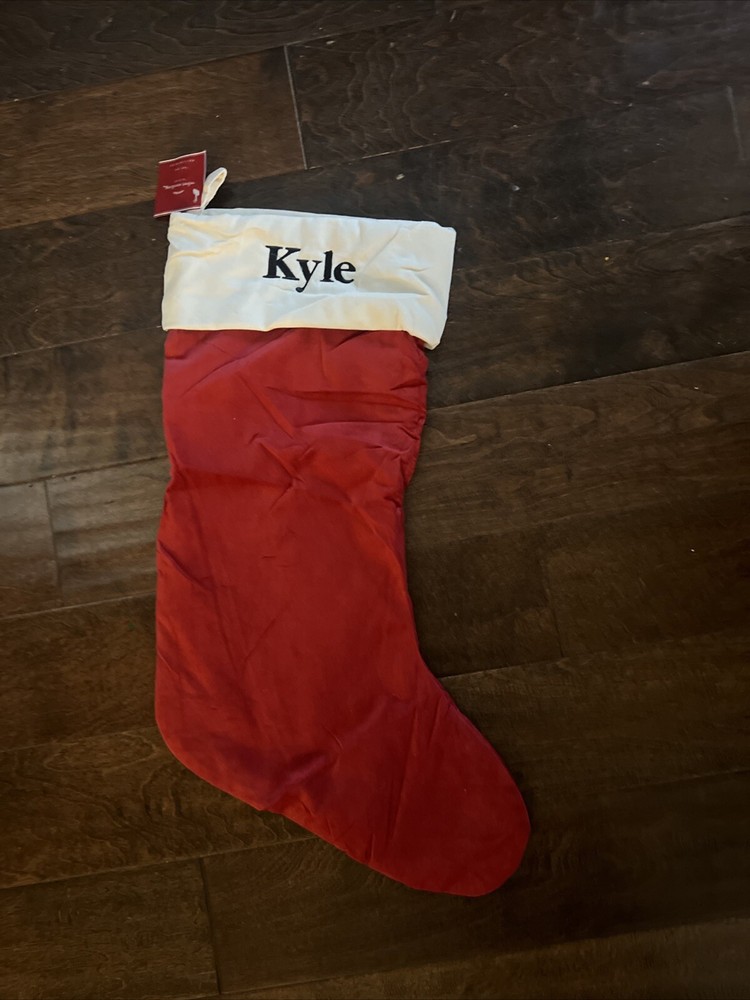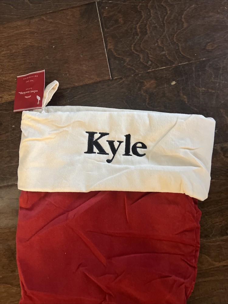 NWT Pottery Barn Classic Large Red Ivory Velvet Christmas Stocking Mono Kyle