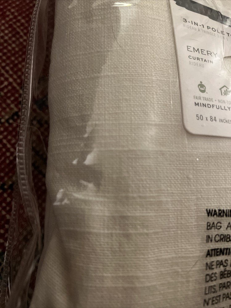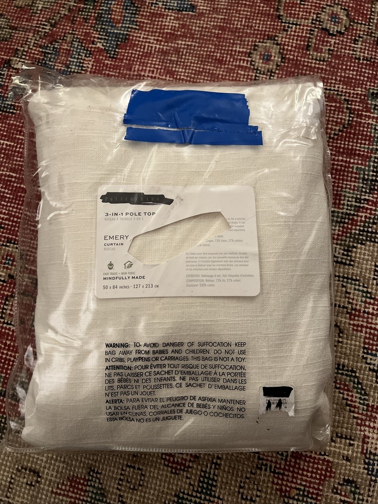 NWT ! Pottery Barn Foundations Emery Drape 3-in-1 Pole Top 50" x 84" White - FS.