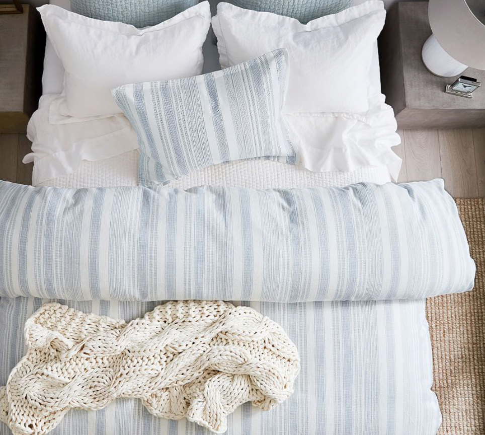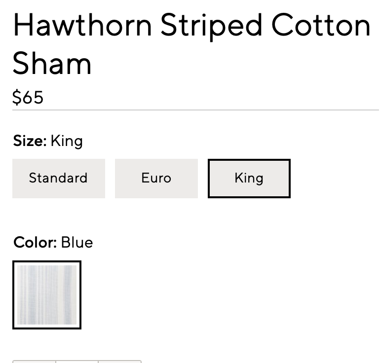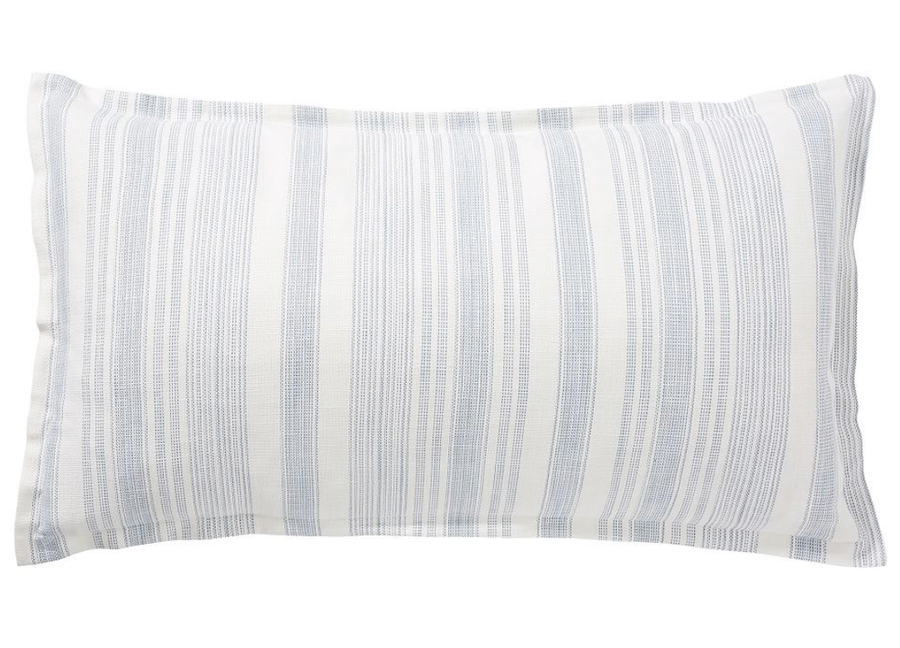 Details Material: Front fabric is woven of 100% yarn-dyed cotton. Thread Count: 200-thread count. Secure Design: Sham features an envelope closure and reverses to solid. Components: Shams sold set of two. Duvet cover and insert sold separately. Dimensions King Sham: 20" h x 36" w Care Instructions Machine wash cold; gentle cycle with like colors. Use only non-chlorine bleach if needed. Tumble dry low; remove promptly. Warm iron as needed.