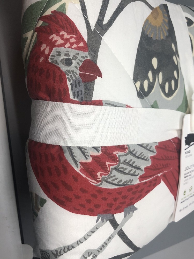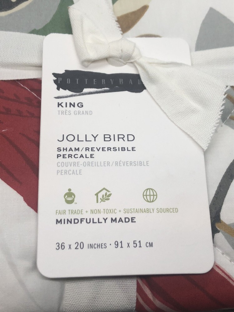 NEW Pottery Barn JOLLY BIRD Pillowcase Sham KING Quilted Tropical Red Bird. Measures 20” x 36”. Brand new and includes tags but tags have been marked to prevent returning the item. See photos, and message me with any questions.