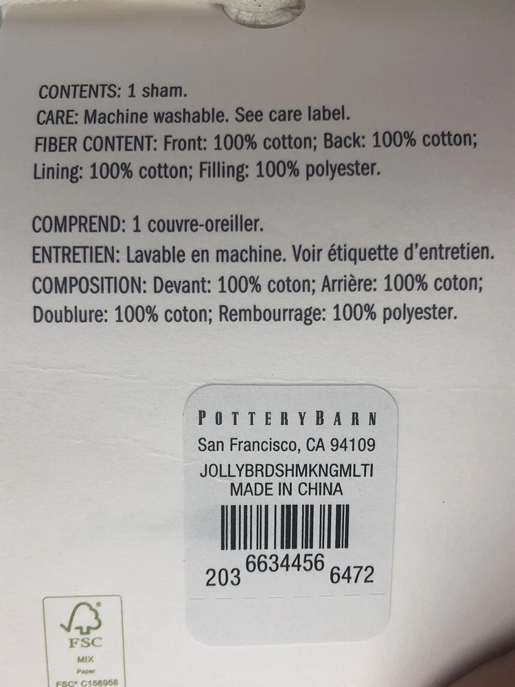 | Fill Material | 100% Polyester |