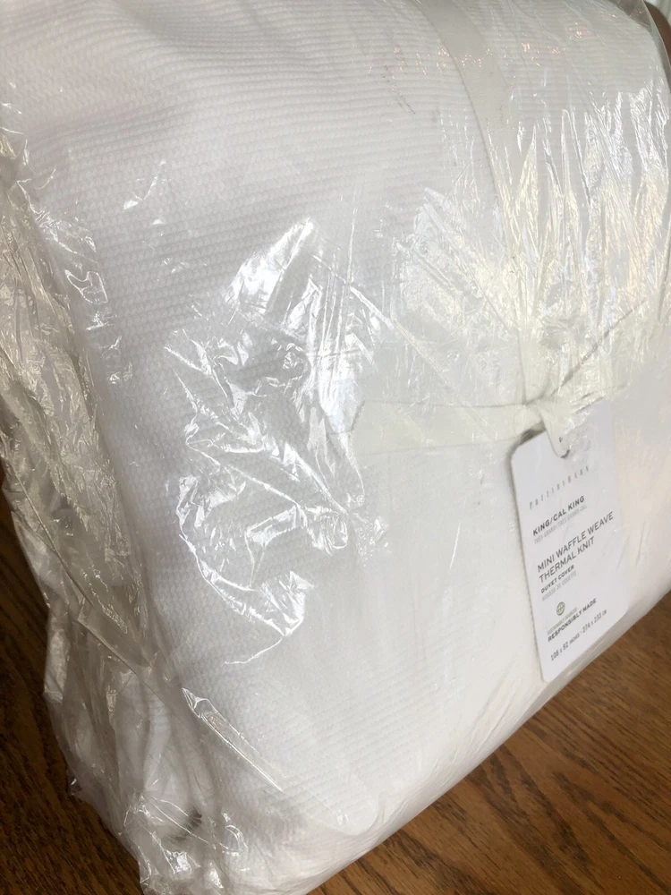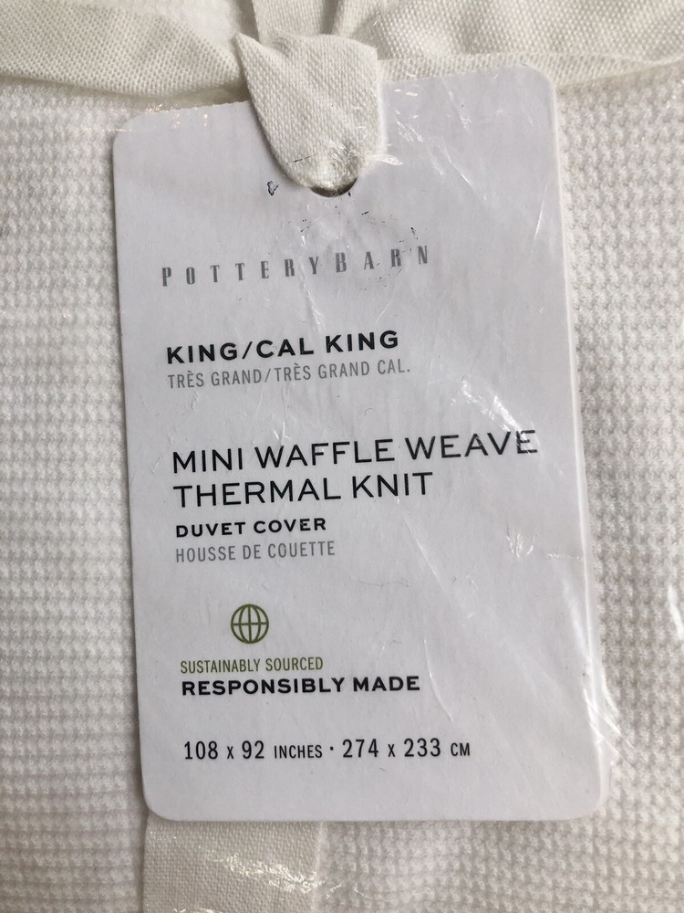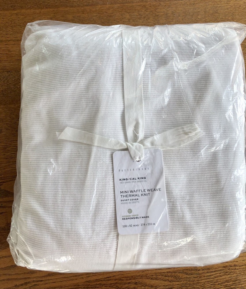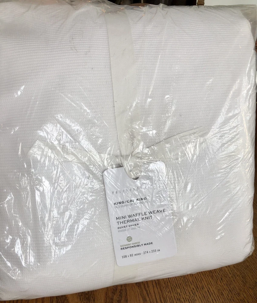 Brand new with tags NWT Pottery Barn Mini Waffle Weave Thermal Knit KING/CALIFORNIA KING Duvet Cover ~ White. Measures 92” x 108”. Message me with any questions....