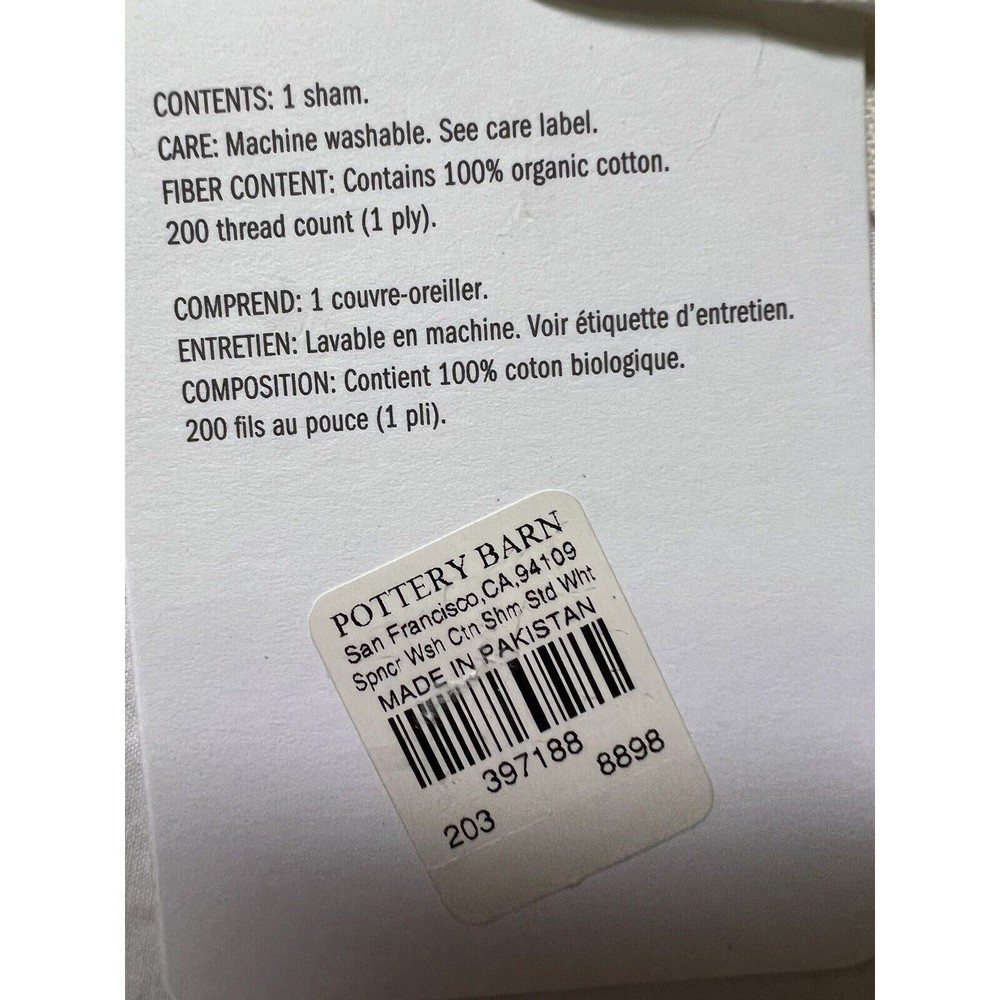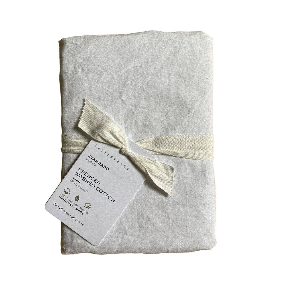 <![CDATA[<div>Nwt Pottery Barn Spencer Washed Cotton Standard Pillow Sham - White. 100% organic cotton. 200-thread count. Still in original packaging. Unused. Comes from a smoke-free home. Cats live here but don't interact with product. I cannot guarantee fur will not transfer. I reuse packaging to reduce waste and our environmental impact. This also cuts costs for buyers. Thank you for understanding.