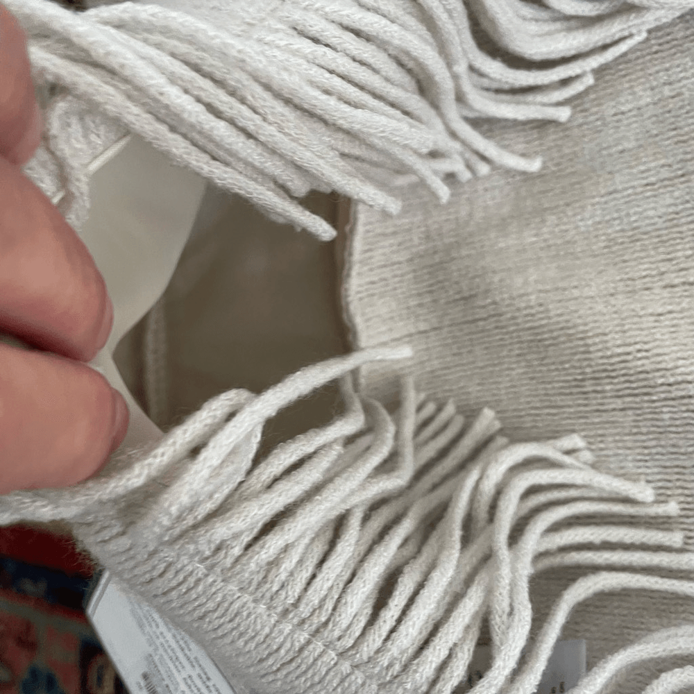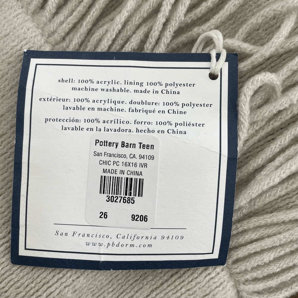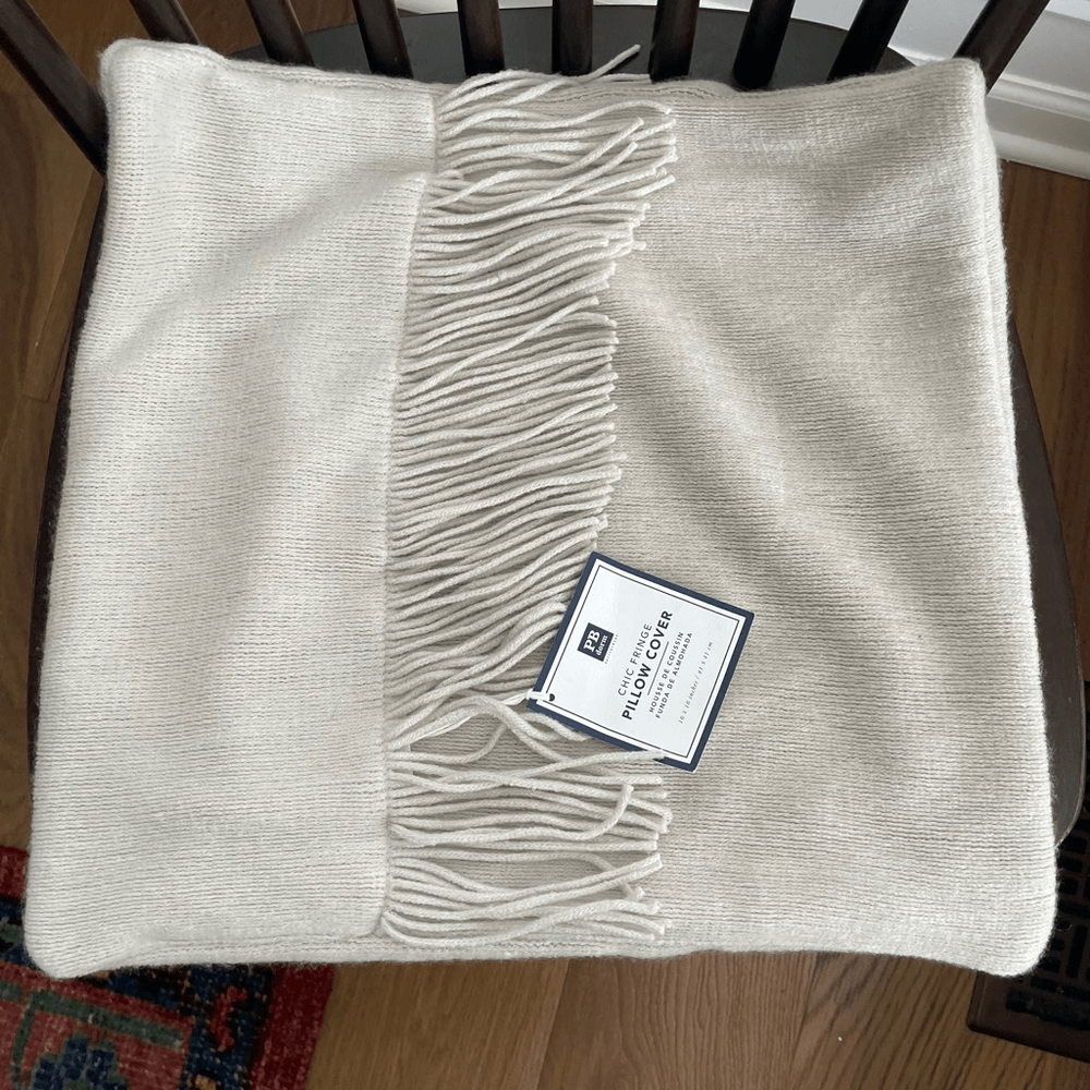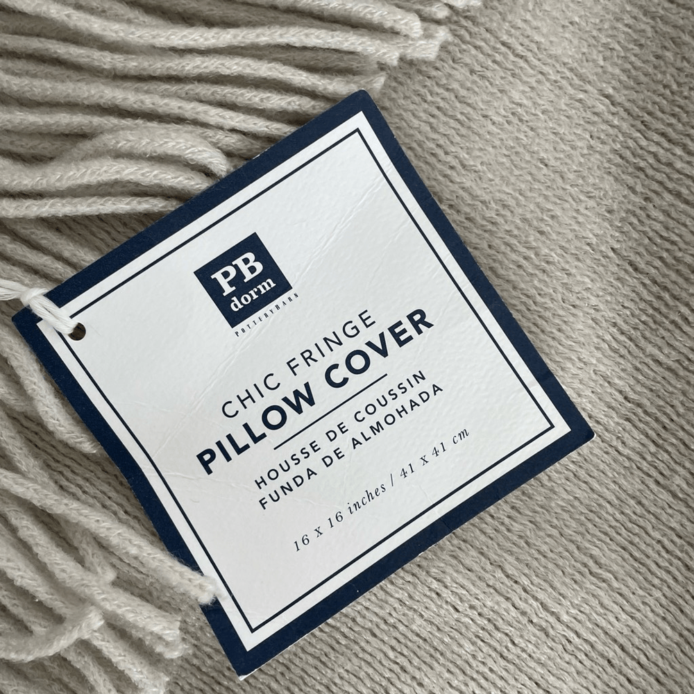 Pottery Barn Teen Dorm Chic Fringe Pillow Cover 16" light gray. Soft sweater knit 16 in.². New with tags. Insert not included. Just the sham as shown.