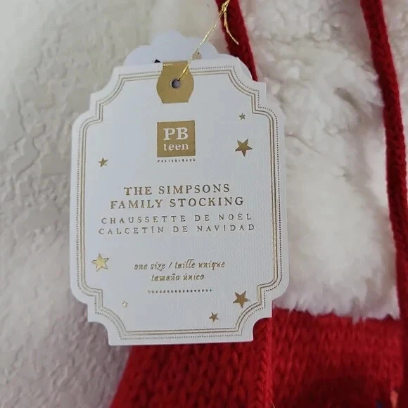 Deck out your mantel with your favorite family from Springfield! Knitted from cozy fabrics, you’ll love to find treats inside on Christmas morning. 100% acrylic Yarn-dyed fiber has incredibly rich color that holds its vibrancy over time. Interior is made of 75% polyester and 25% cotton. Overall: 8.5" wide x 20" long Top Opening: 8.5" wide Cuff: 5.5" Top of cuff to Heel: 16" Heel to Toe: 11" Hanging Loop: 3" long Pom-pom: 3" long Spot clean with a damp, white cloth. Blot to remove excess water. Air dry.