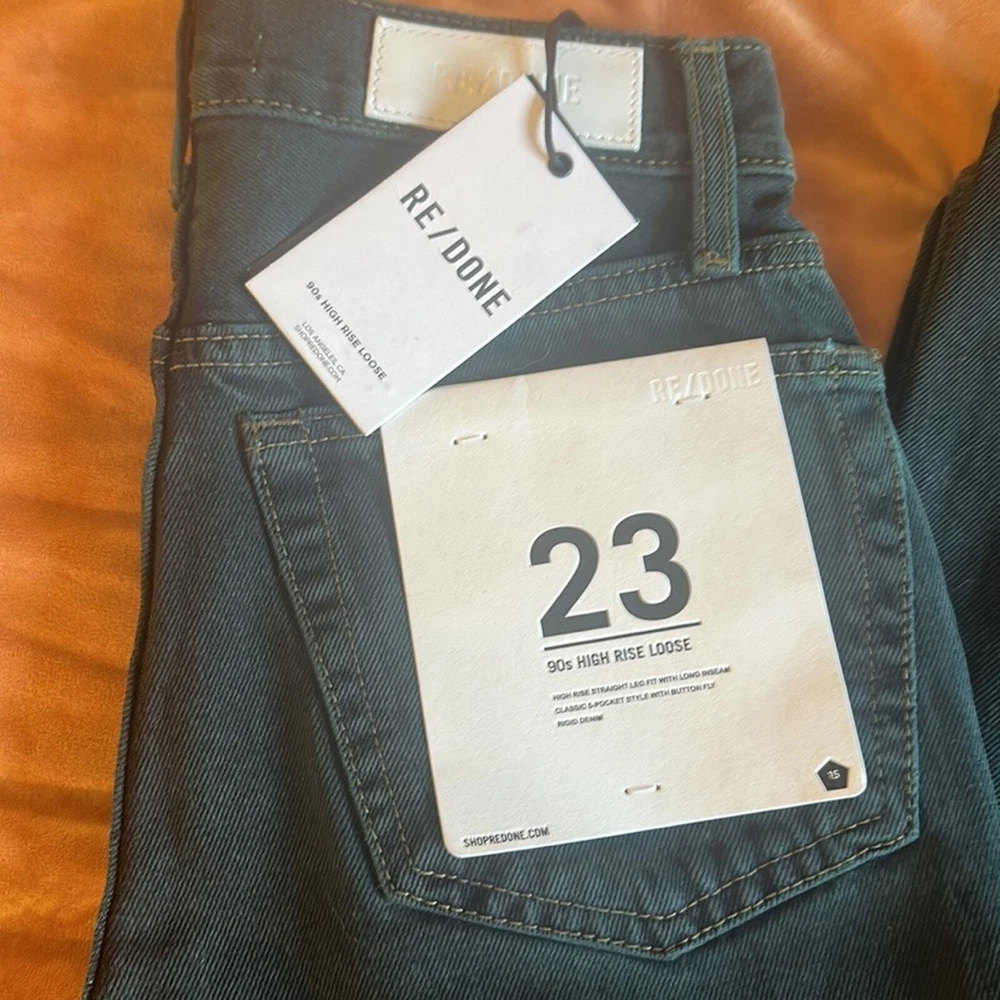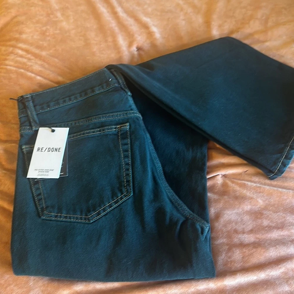 <![CDATA[<div>NWT ReDone High Rise Loose Evergreen Dipped Denim Jeans Women Size 25 Features: Brand: ReDone Style: Denim Type: Jeans Color: Black Print: Solid Size: 25 Belt Loops 5-Pocket Design High rise loose Evergreen dipped denim Waist 14/28 Rise 11 Inseam 33 Retail: $295 Care: Machine Wash Condition: New With Tags! No flaws Offers welcome! Please take another peek in our Store; We love to send great deals and offers! Thanks!