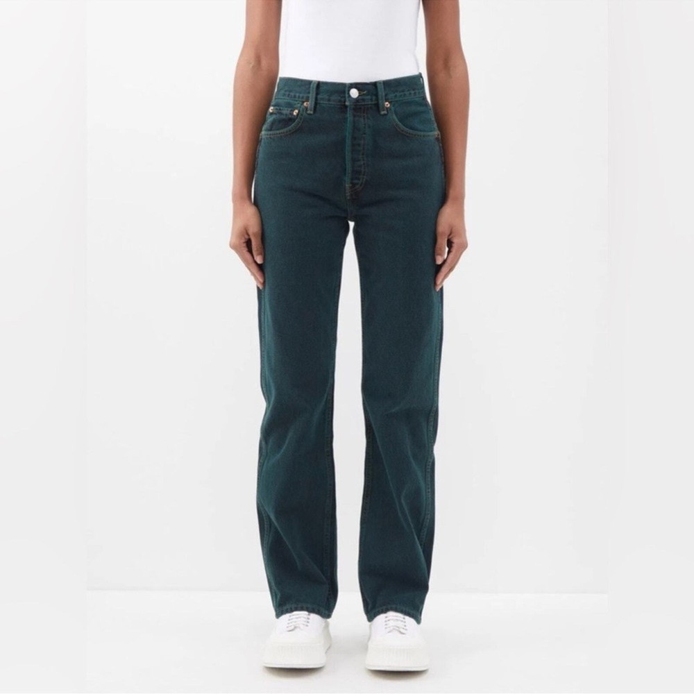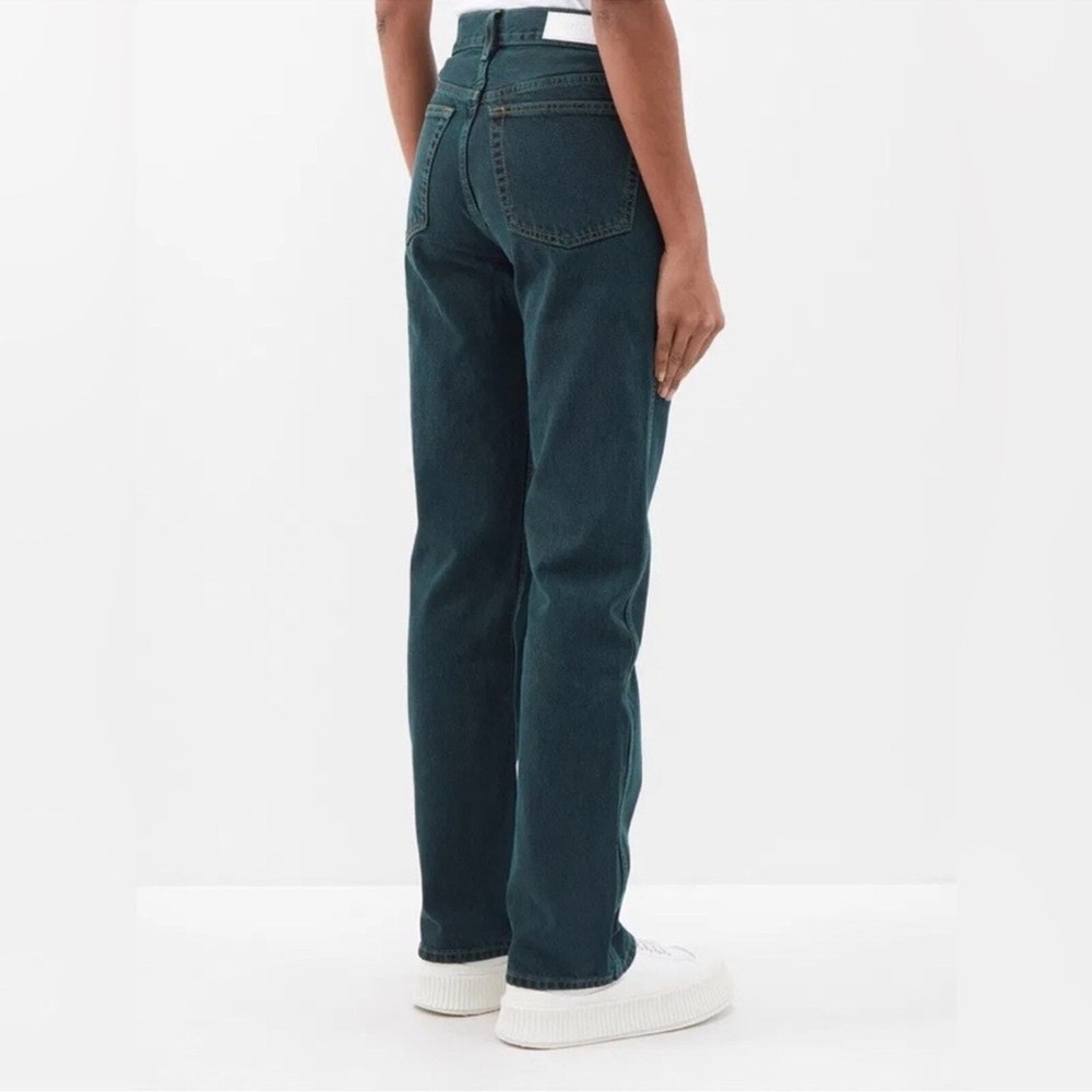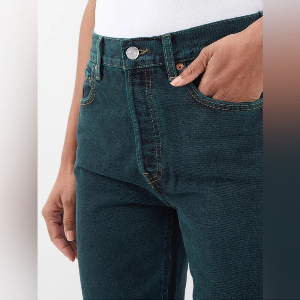 These jeans are amazing! The high-rise fit is super flattering, and the loose, dipped design gives them a cool, vintage vibe. The denim is soft yet sturdy, and the evergreen color is unique and stylish. Perfect for dressing up or down—super versatile and comfortable. Love them!