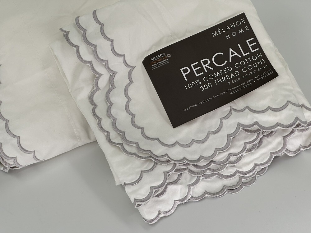 New, includes original tag, but not original poly bag, has been unfolded to inspect item and they are perfect and new. Made from 100% percale cotton. 300-thread count. Features French envelope closure. Set of 2. Imported. Euro: 26" w x 26" l