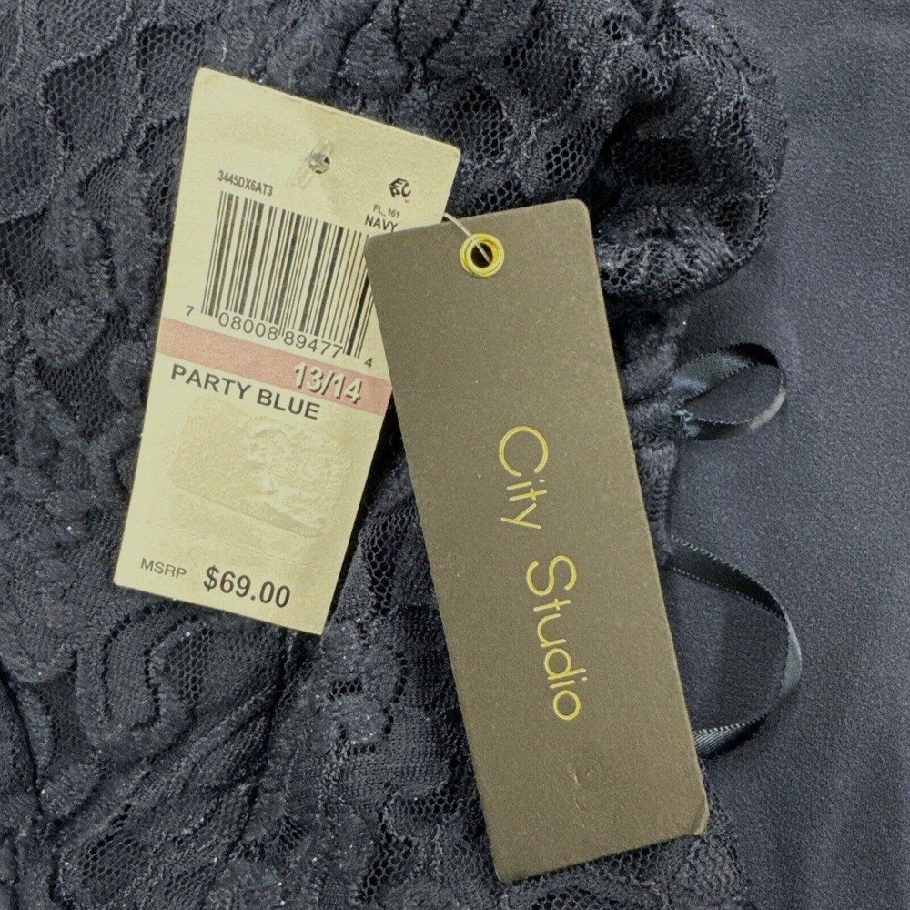 <![CDATA[<div>NWT Sz 13/14 City Studio Navy, Fit And Flare, Halter Dress. Floral Embroidered/Glitter Sweetheart Neckline.