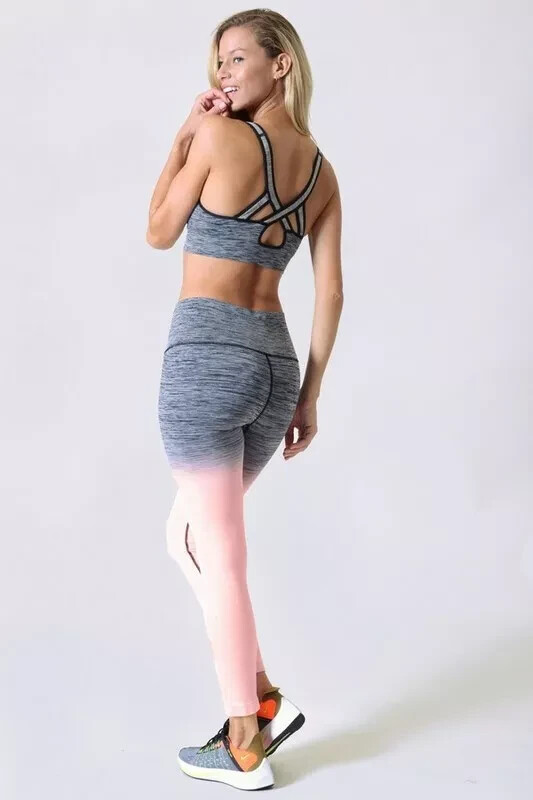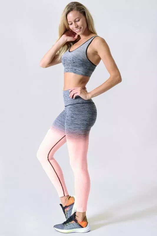 These stretchy leggings are anything but basic- they featurea gradient knit ombre print that's sure to give you serious workout motivation! - 6" compression high waistband - Gradient ombre print on a skinny leg design - Flat seams give you a chafe-free/discomfort wear - Stretchy, comfortable - Moisture wicking - Two Tone Dip Dye Ombre Leggings