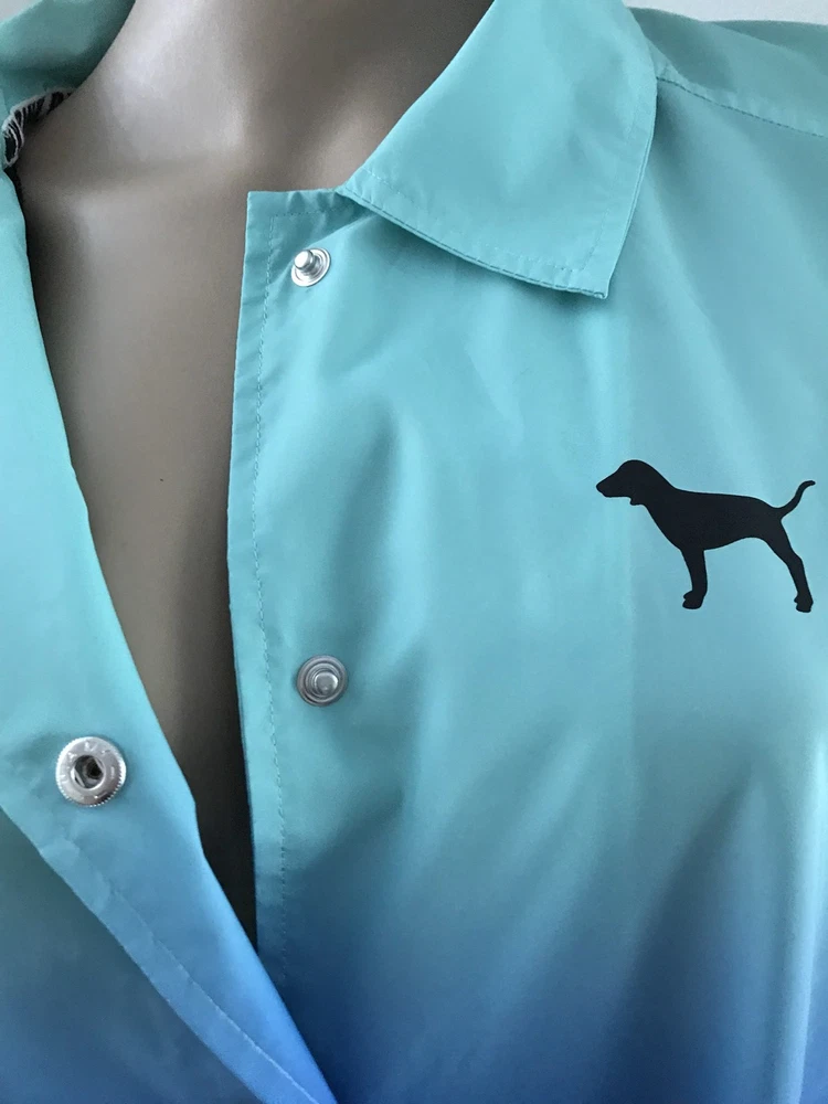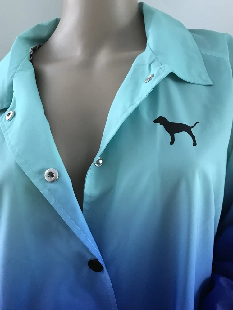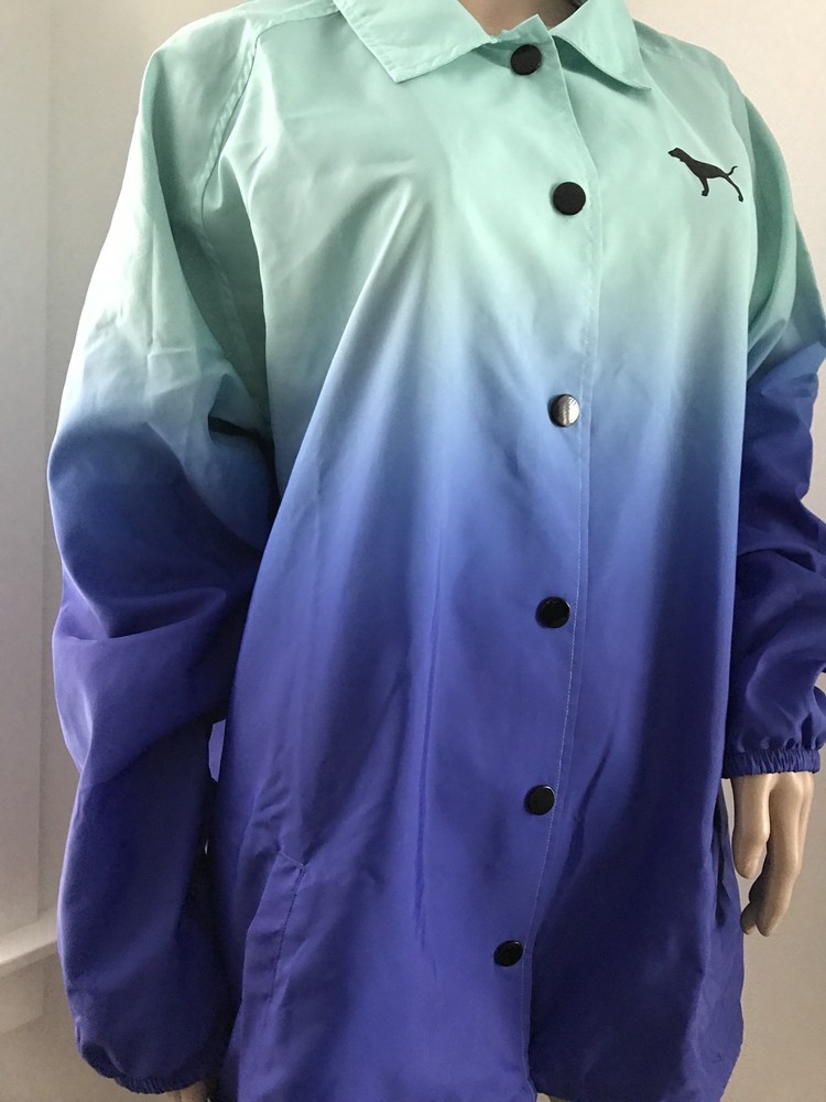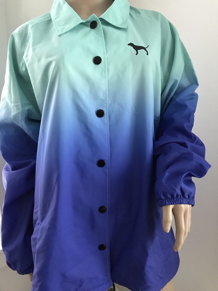 Authentic! brand new with tag! Size is Large VICTORIA'S SECRET PINK Logo Full Snap coaches Jacket. Snap front jacket with over sized fit and side pockets. Lined inside. Aprox: Bust - 24.5” flat under arms Aprox: 29” tunic length Snap front Pockets Relaxed fit Collar Comes from animal / smoke free home