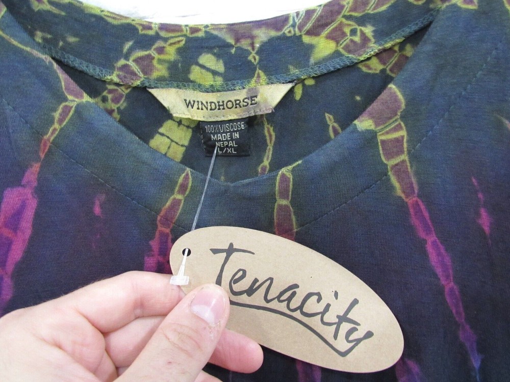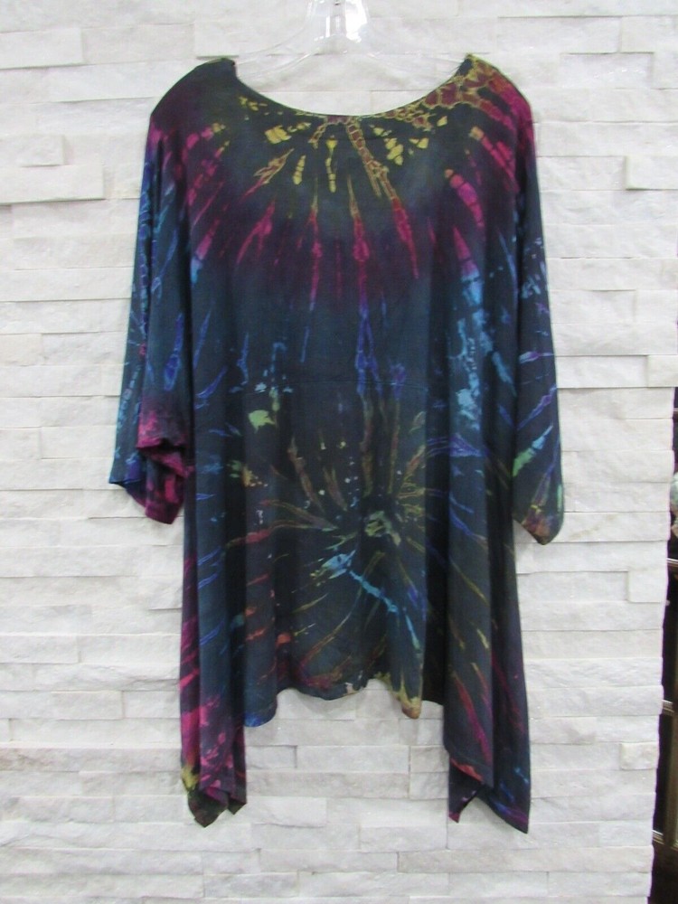 We now have two stores! Be sure to check out Guya103. We have been in business for over 15 years and are proud to open another store here on Ebay. Both stores carry designer, boutique and wearable art clothing at bargain prices. Happy shopping! Measurements Measurements Taken Flat Across Tunic Bust Waist Bottom Shoulder Width Sleeve Length Body Length- front, back 24'' 27'' 37'' 15'' 13'' 27'' Description: NWT Windhorse boutique top in a size XL. It is a fluid jersey of 100% viscose and has a tie dye design with a dipped hemline and elbow sleeves. Fun, funky artful piece! Thelook's Condition Guide NWT/NEW WITH TAGS BRAND NEW WITH THE TAG(S) NWOT/NEW WITHOUT TAGS BRAND NEW, NEVER WORN, TAGS REMOVED LIKE NEW ITEM IS PERFECT WITH NO SIGNS OF WEAR, BUT IS USED EXCELLENT ITEM IS USED WITH NO FLAWS OR MAJOR SIGNS OF WEAR GOOD USED ITEM IS USED WITH SOME SIGNS OF WEAR Authenticity Guarantee: I stand behind the authenticity of all of the items I sell. Feel free to take them to an expert and have them authenticated. Payment Policy: All payments are expected within three days. An unpaid item dispute will open on day four and a strike will be given for nonpayment. Combined Shipping: I gladly combine shipping on multiple items. Discounts are applied to all invoices with multiple items purchased. Domestic Shipping: Shipping costs are calculated based on the weight of the item and your zip code. I do not profit from the shipping. International Shipping: I gladly ship anywhere in the world. Shipping is calculated based upon the weight and your location. I do not profit from the shipping. Please do not ask me to lie about the value of the item(s) on a customs form. I will not lie and it is against the law. You are responsible for any and all fees imposed by your country. Return Policy: I have a 30 day return policy. Feedback: I greatly appreciate your positive feedback and will leave it for you once it has been left for me. Listing and template services provided by inkFrog