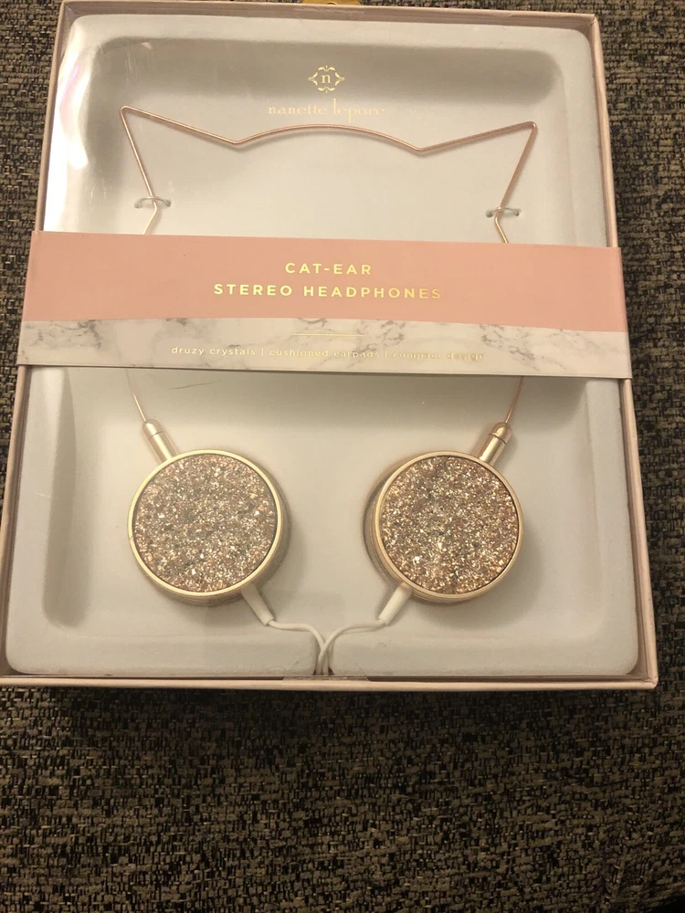 Nanette Lepore Cat Ear Shaped On-Ear Stereo Headphone Druzy Crystals Rose Gold. Condition is New. Please feel free to ask if in doubt. Please see the photos for the condition the item(s), as what you see will be what you receive. Item(s) will ship USPS or Fed Ex whichever is cheapest. Smoke free home. Whenever possible, I use recycled shipping material which a local business saves for me or from my own online purchases. Recycling shipping material aids in reducing the waste that is filling up our landfills. BUYERS: When you purchase one of our items, it is understood that you have read this complete listing description and fully acknowledge and accept what you're buying and the terms of sale, services we provide and our return policy. We would appreciate it very much if you're not satisfied with your purchased item, that you would contact us first to resolve any issues prior to leaving derogatory feedback. Our reputation here at Ebay is very important to us, and we want you to be happy with your purchase. We strive to offer the very best service to our clientele. Sale is Final