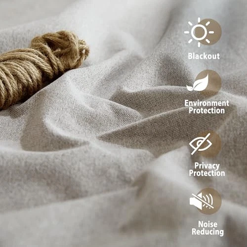 Return Policy Fast Delivery Trusted seller Natural Linen 100% Blackout Curtains 90 inches for Bedroom, Farmhouse Style Keep Warm Faux Linen Blackout Curtains with Thermal Insulated Liners for Dining R...