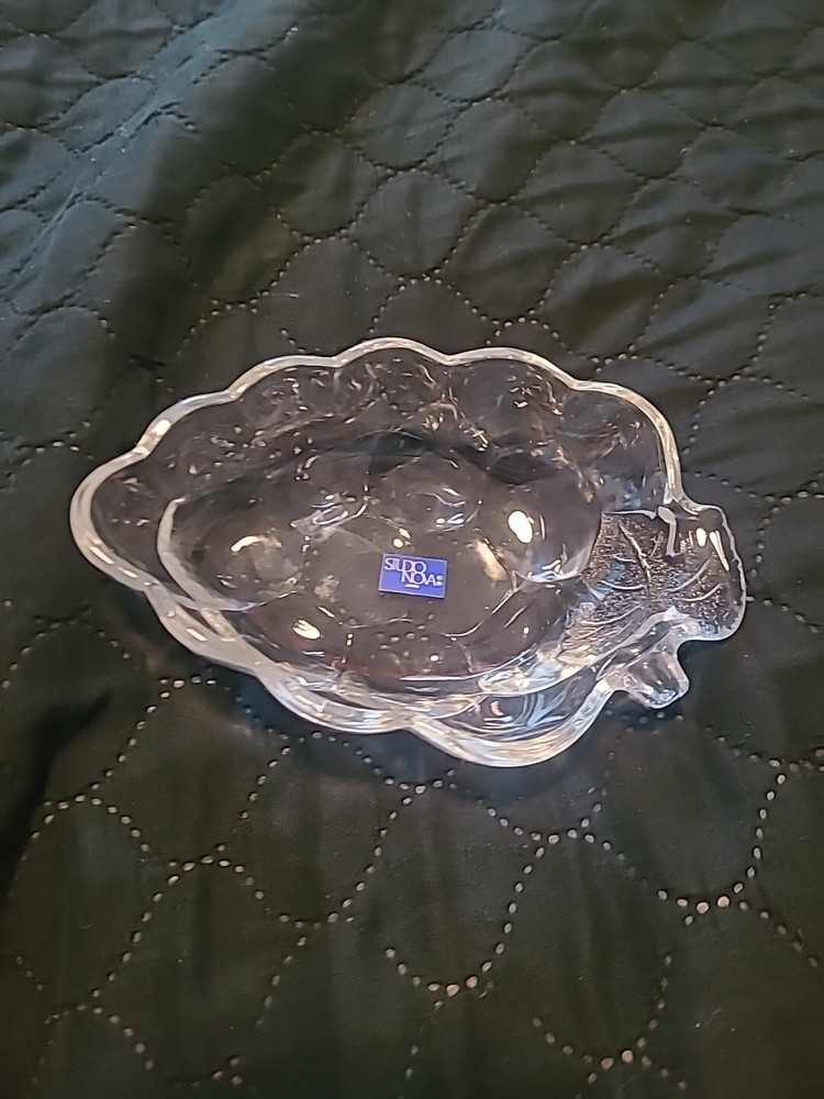 Add a touch of art deco to your decor with this Studio Nova fruit bowl from the Nature's Harvest collection. Crafted in the late 20th century, this grape-shaped bowl is made of clear glass with a glossy finish. Perfect for all occasions, the decorative bowl is ideal for serving fruits or as a standalone centerpiece. The bowl is a one-piece set and is an original studio-crafted product with a printed backstamp. It weighs approximately 1 lb and is from an unknown country of manufacture. The bowl is in excellent condition and will add a unique touch to your collection.