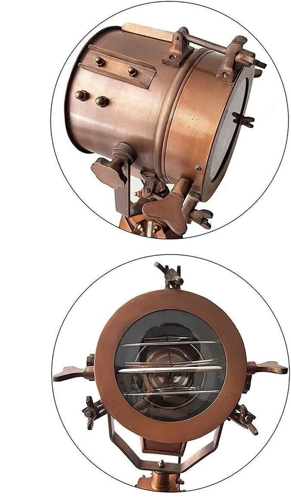 DESCRIPTION ; Material : Aluminum, Steel & Wood Finish : Copper Antique Finish Head Size:10" X 9" Inches, Height:45" inches, Diameter:18" inches All product are handmade by experienced worker, Truly Hand-Crafted, Nautical Searchlight, Tripod Floor Lamp Quality Assurance Quality is a parameter where we make no compromises. The products that we offer to our clients are high in quality, beautifully designed and of high performance. : SHIPPING POLICY Delivery time is 5 TO 9 days from the date of purchase on working days. Remote areas or places or cities take up to 15 Days for shipment to be delivered. We Ship through ebay global shipping : Logistic Partner DHL Express, Fedex, Aramex and Small items is send through India post it take 10-12 days : NOTE--ALL CUSTOM DUTY WILL BE PAID BY THE BUYER : Returns Policy We accepted the return within 30 days money back or item exchange, buyer choose buyer pays return shipping. Returned item must be in original and unused condition; good must be in its original packing. : FeedBack We request our all buyers to please leave positive feedback. In case of any discrepancy arising out of our product, kindly do discuss it before leaving any Negative/Neutral Feedback. : Please also check our other items we are deal in bulk Thanks with Best Regards By : ALFA-NAUTICAL