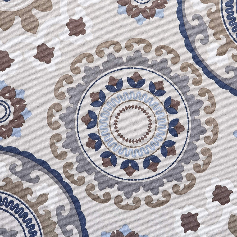 Global medallion print brings global intrigue to any room of your home Blackout technology blocks out most unwanted light while enhancing privacy Energy Efficient design reduces energy lost through your windows by up to 30% Thermal properties help keep summer heat and winter chill out of your home Silver metal grommet top fits a standard curtain rod up to 1.5" for easy hanging