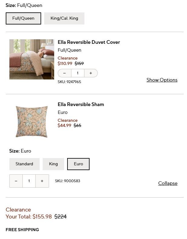 ~~~~~~~~~~~~~~~ Welcome to the Pottery Barn Treasure Trove: I have the widest selection of out of production, discontinued, and hard-to-find quilts and duvets from Pottery Barn, on the web. This is quite possibly your last chance at owning some of these classic/vintage Pottery Barn bedding patterns, in new condition, ever. Don't miss out. Once they are gone, they are gone forever. Get this while you can from a trusted eBay seller! ~~~~~~~~~~~~~~~ P O T T E R Y B A R N Ella Reversible 2 Piece Queen Duvet Set Queen Duvet + Euro Sham Listing Details: This listing is for a 2 piece bedding set from Pottery Barn. This is the Ella Reversible pattern. Just the queen duvet and one euro sham are included in this set. LOWEST BUY IT NOW PRICE on EBAY as of the time of this listing PRICED LOWER THAN POTTERY BARN'S WEBSITE as of the time of this listing: To buy this from the store, it will cost you $155.98. Get it here for LESS!!!! DISCLAIMERS (IMPORTANT): All of the items I sell come from a clean, smoke-free, pet-free home, for those of you that might have allergies. All items are authentic. None of my items are outlet items unless specifically stated. I am not affiliated with Pottery Barn in any way. My pictures are of the exact product I am selling. The condition you see the item in the picture, is the condition you will receive the item. If the resolution of the picture is not sufficient for you to make your buying decision, please feel free to contact me for more photos or for more information. I do my best to provide accurate descriptions for all items.This is an AS IS listing. Please email questions BEFORE buying as ALL SALES ARE FINAL. In the event of a fulfillment error made on my part (i.e. wrong item sent), I will pay to have you ship the item back and will send out the correct item. I do not guarantee manufacturer's quality for unopened items (I will not remove an item from original manufacturer's packaging). I do not warranty color. Cameras & computer screens do crazy things w/colors. Because I will not allow returns if you are not satisfied with how the color looks under your specific kind of lighting. Do not think to abuse the eBay resolution process, stating you received the incorrect item if you did not indeed receive the wrong item. As part of the resolution process, you WILL HAVE TO fully and clearly document and demonstrate (w/pictures & full explanation) how the product you received was not what was listed. Any frivolous use of the dispute/return process to try to return an item will be immediately reported to eBay. Despite all of the above listed disclaimers, I am a reasonable person. Unfortunately, there is a small percentage of eBay users out there that wish only to scam, waste sellers' time, and otherwise disrupt the great buying/selling resource the eBay is. Should you purchase an item and you are not satisfied with it, please email me directly, at the email listed in the PayPal payment receipt, to discuss the possibility of a return. If I grant a return authorization, it will always be under these terms: 1) you will need to pay return shipping, 2) The item must be returned in the EXACT SAME CONDITION that it was shipped 3) initial shipping fees are not refundable & 4) the refund will be equal to the purchase price, less shipping, & less a 25% restocking fee. If any of these conditions are not met, the item will be returned to you and the refund forfeited. Expensive or rare items will be shipped out with a signature service. This is a protection to both you, the buyer, and me, the seller. Also, if you have a low, or zero feedback rating, an adult signature will also be required. Should any damage of an item be incurred during shipping, it is the responsibility of the buyer to document the damage with clear picture for me to file a claim within 48 hours of receipt. Failure to provide ANY needed information will void the shipping insurance, at the buyer's risk. Document the damage with photos (pictures of exterior of the box where damaged, and pictures of broken item). Email me these pictures, along with a description of the damages. Shipping to continental US only, unless prior authorization has been made before checkout. Check out my other auctions! Thanks.
