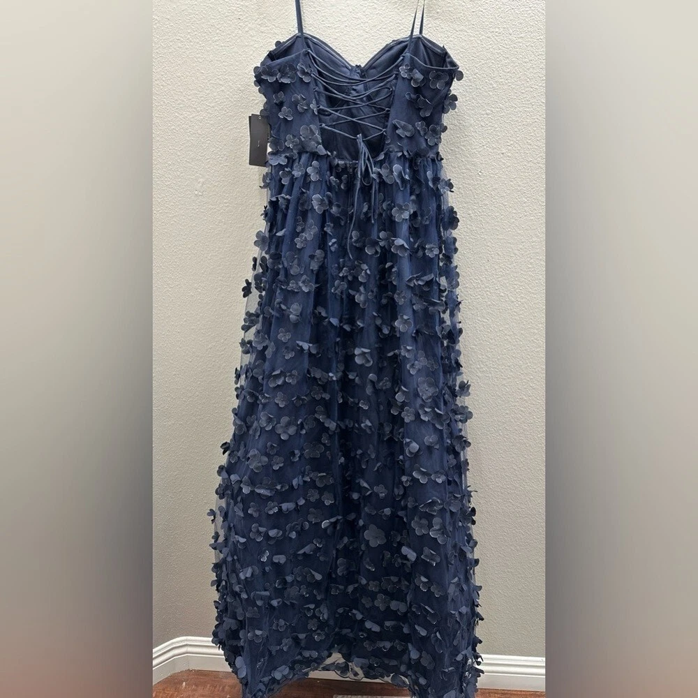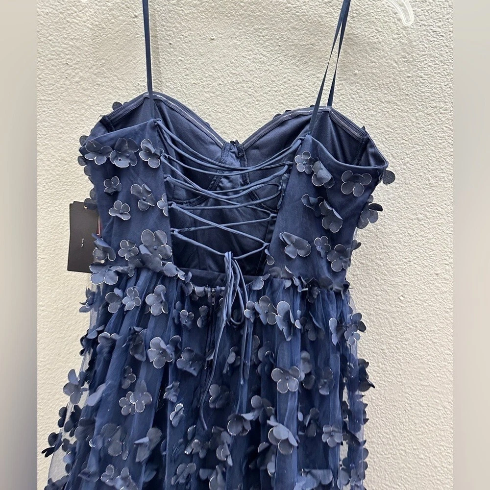 This dress is absolutely stunning! The navy lace floral details are elegant, and the hidden back zipper with lace-up adds a gorgeous touch. The sweetheart neckline and floor-length silhouette make it perfect for prom or formal events. The fit is true to size, and it's lined for extra comfort. Feels luxurious and looks way more expensive than it is—love it!