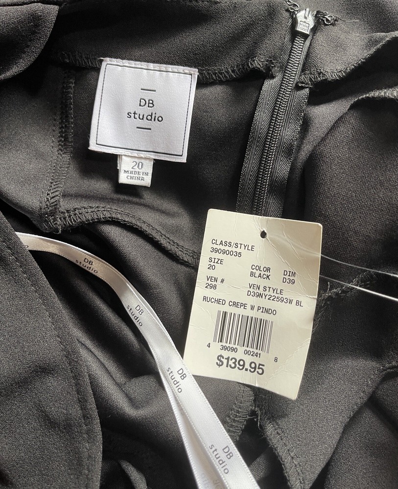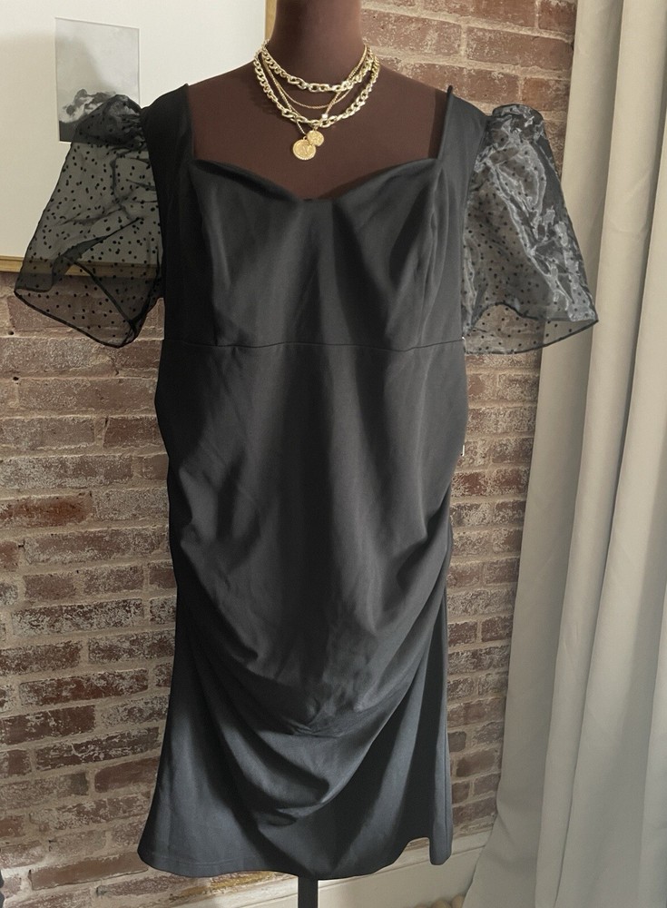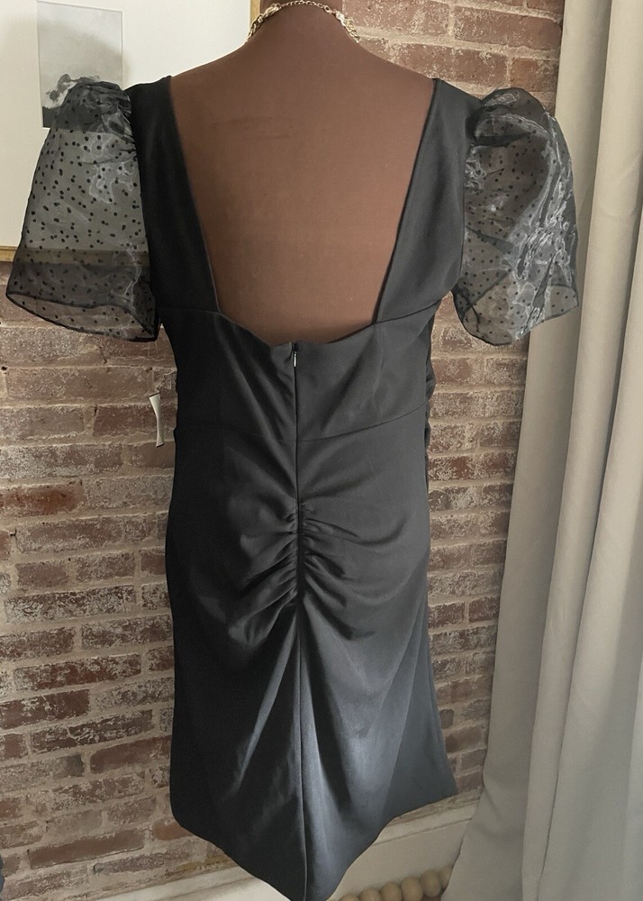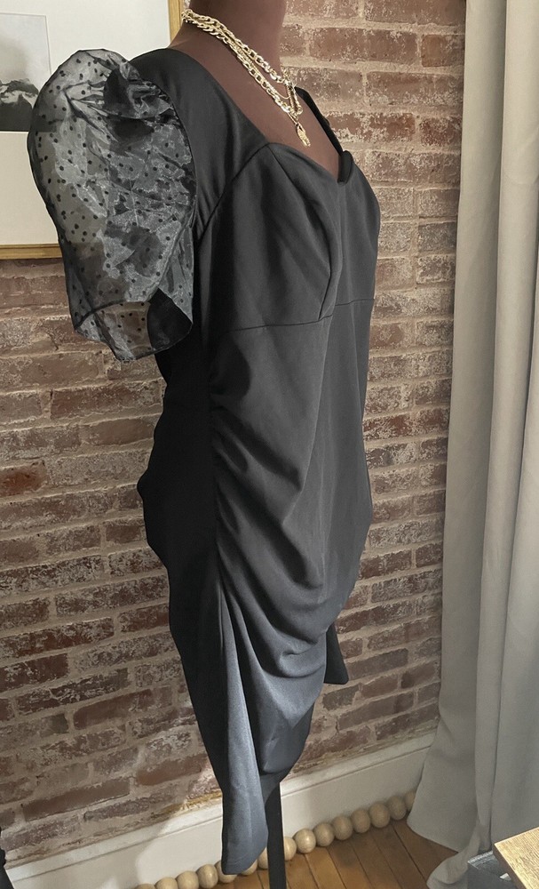 New! DB Studio Black Puff Sleeve Sweetheart Neck Low Back Midi Dress Plus Size 20....