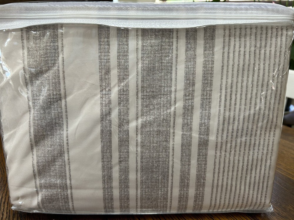 New Hawthorn Striped Cotton Full/Queen Duvet Cover Taupe like Pottery Barn....