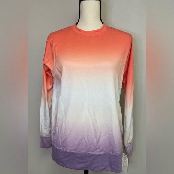 ID IDEOLOGY Dip-Dye Sweatshirt Women's Peach Echo Hem Side-Slit Crewneck Long Sleeve MSRP $39.50 ID Ideology's dip-dye top adds instant style to your post-workout (or hangout) look. Crewneck Slits at sides of hem Pullover Oversized and cozy